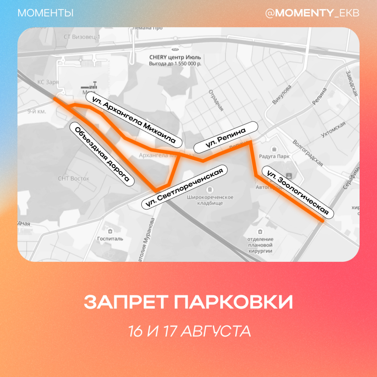 — Ограничения коснутся обоих направлений: улицы Репина (от Зоологической до Светлореченской), улицы Светлореченской (от Репина до Объездной дороги), от Светлореченской до Московского тракта, всей улицы Архангела Михаила, а также всей улицы Зоологической, — поделились сотрудники администрации Екатеринбурга.