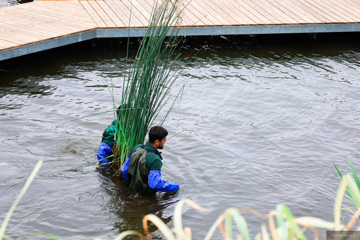 — Специально для фестиваля мы создаем биоплато. Это искусственно созданный участков в водоеме, в который мы и высаживаем разные виды растений. Они станут природным фильтром для очистки воды, — поделился с «Моментами» куратор по озеленению территории Сергей Беляев.