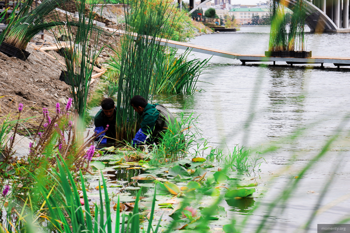 В рамках VII Международного фестиваля ландшафтного искусства «Атмофест» на набережной Исети начались работы по благоустройству городского пруда. Теперь в Екатеринбурге появится свой личный сад на воде. Для озеленения территории возле Макаровского моста было закуплено более 1000 водных растений.