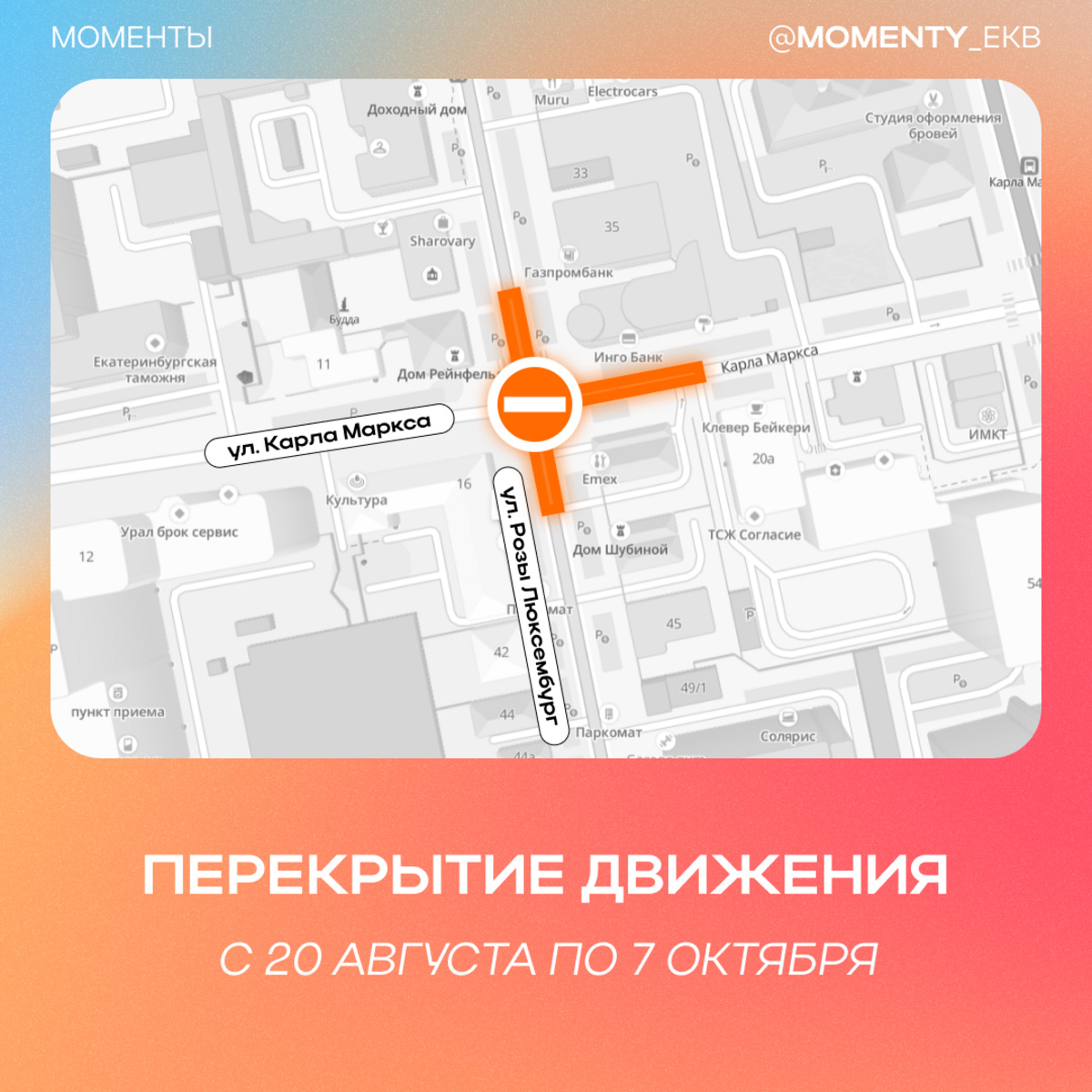 В центре Екатеринбурга перекроют движение по одной из главных улиц. На нечетной стороне Розы Люксембург ограничат проезд транспорта. Также временно закроют участок на Карла Маркса.