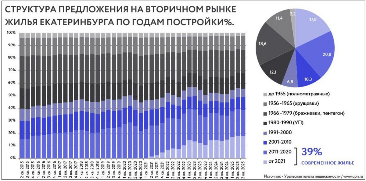 На вторичном рынке Екатеринбурга растет доля современного жилья. Об этом в своем блоге REBURG рассказал начальник аналитического отдела Уральской палаты недвижимости Михаил Хорьков.