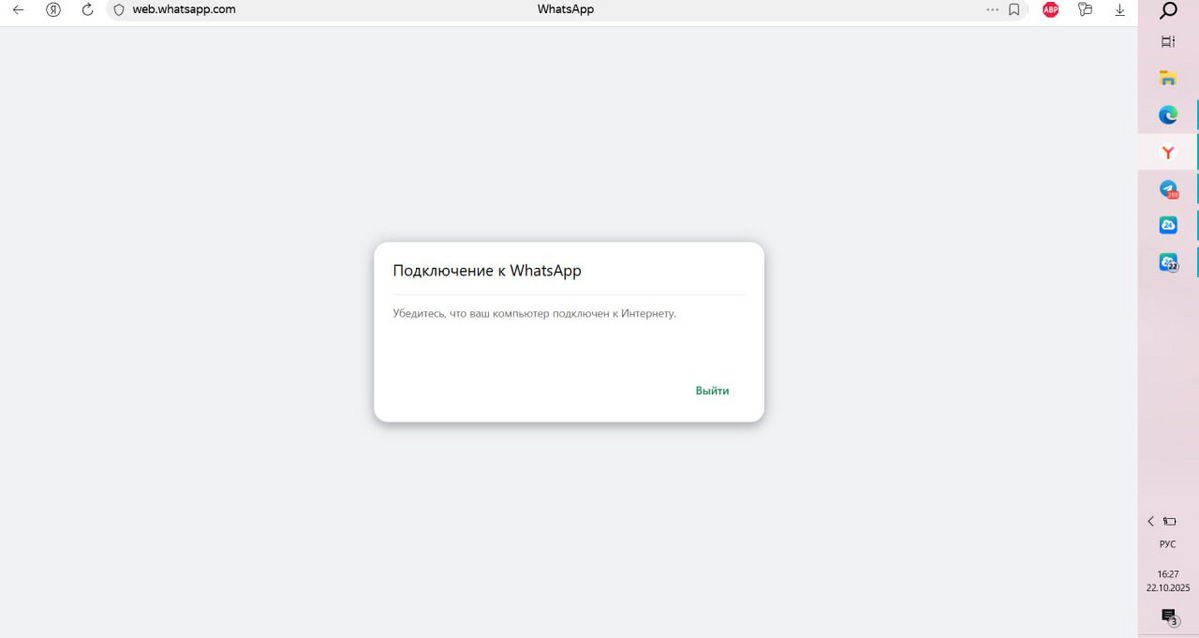 — Не получается попасть в WhatsApp* с компьютера. А у меня там сообщения висят. На телефоне тоже работает с перебоями, — рассказала «Моментам» одна из читательниц.