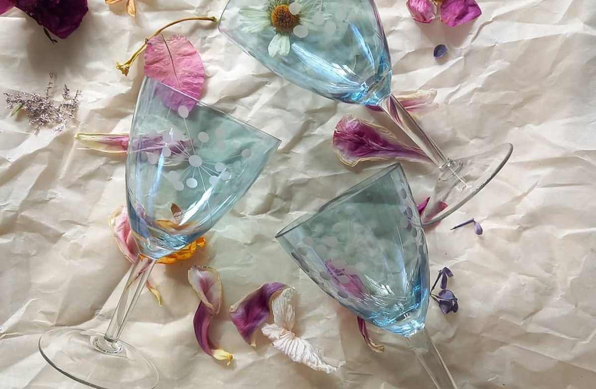 Елена и Евгения основали проект «Бокал и брошь», когда поняли, что дома все находки уже не вмещаются. Вместе с этим девушек стали часто спрашивать о том, где они находят красивые блюдца и чашки. Поэтому у Елены и Евгении появилась идея делиться своей коллекцией с ценителями эстетики.