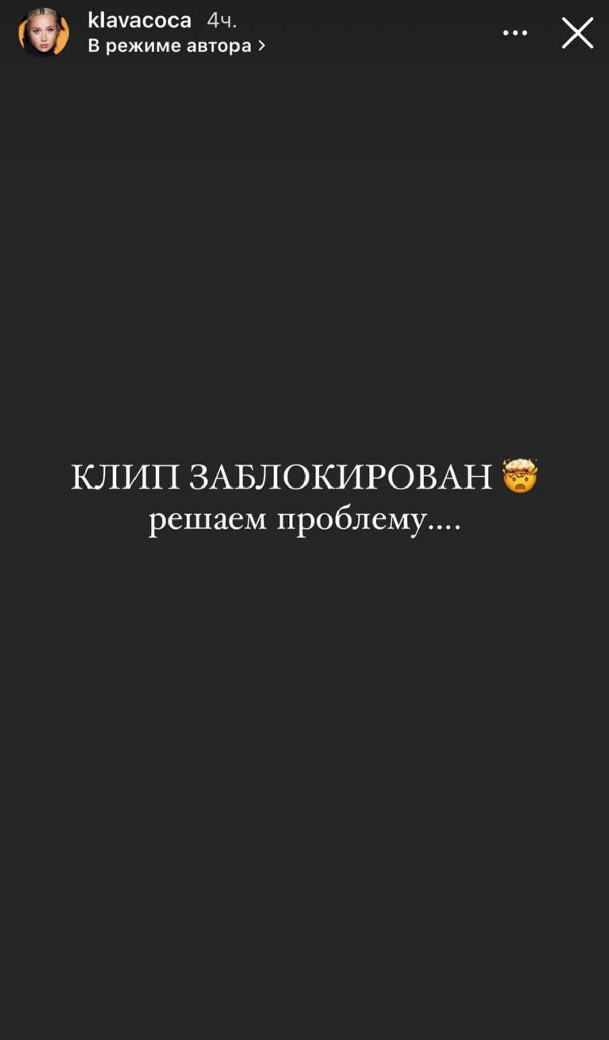 «Родные, я думаю, вы уже в курсе, что у нас были проблемы с клипом. Мы уже все решили. Такого у нас еще никогда не было», — рассказала в своем Telegram-канале Клава Кока.