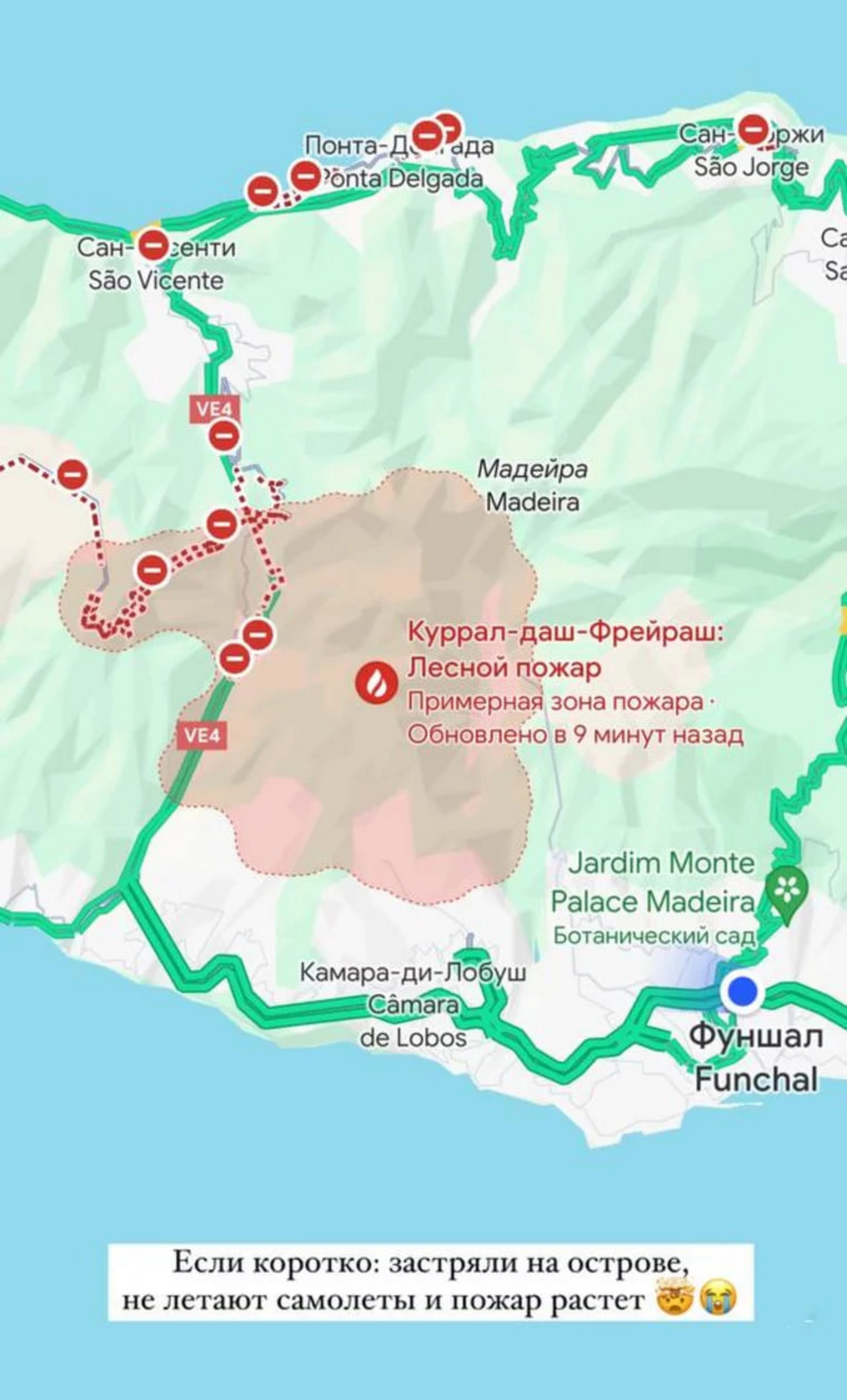 Из-за пожара на остров не садятся самолеты. Мадейра, место отпуска Клавы Коки и Александра Поверина, известна аэропортом, который считается одним из самых опасных в мире из-за короткой взлетно-посадочной полосы, уходящей в море. Он требует от пилотов наличия специального сертификата для выполнения посадки.