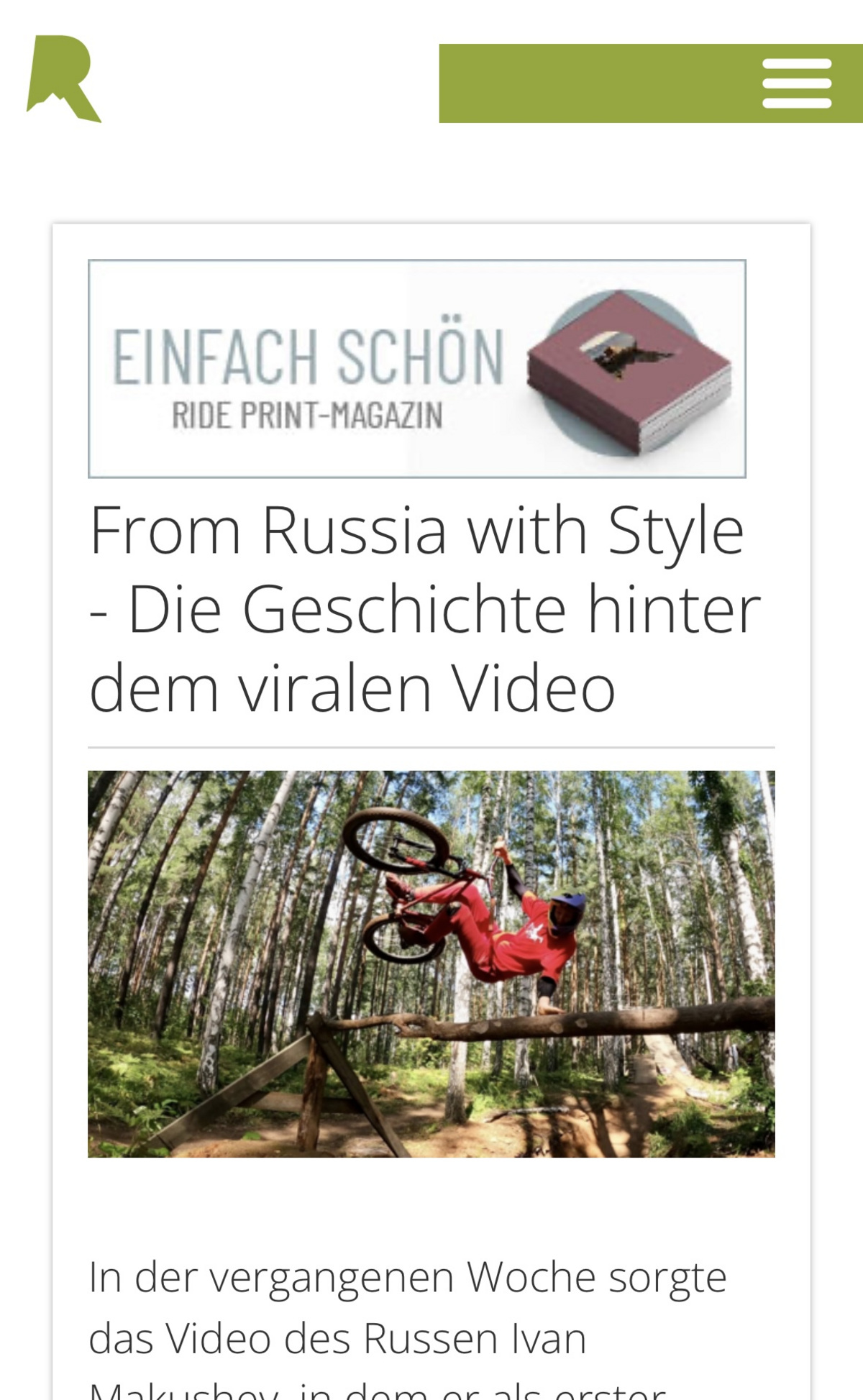 В материале Ride Иван рассказал про свою жизнь до популярности ролика, мечты посетить зарубежные соревнования и трудности, с которыми он сталкивается. Спортсмен также поделился своим мнением о ситуации с фрирайдом в Екатеринбурге.