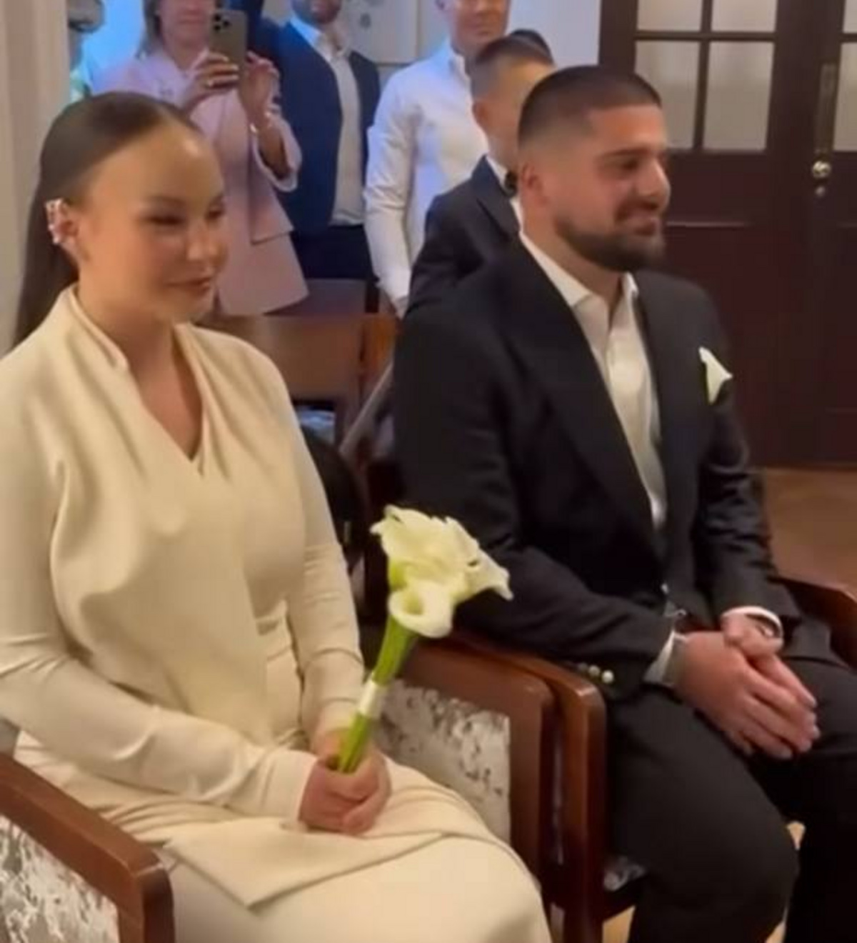 Церемония бракосочетания состоялась в узком кругу близких людей. На пальце Елизаветы можно заметить кольцо, предположительно от ювелирного дома Cartier.