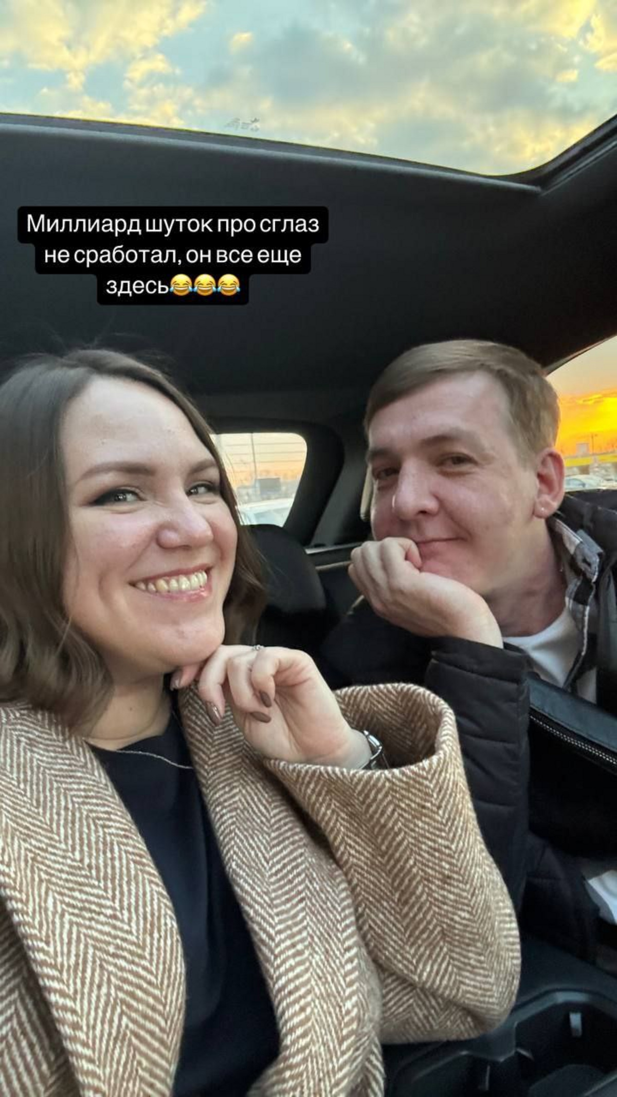 — Миллиард шуток про сглаз не сработал. Он все еще здесь, — пошутила уральская артистка под фото с ее спутником.