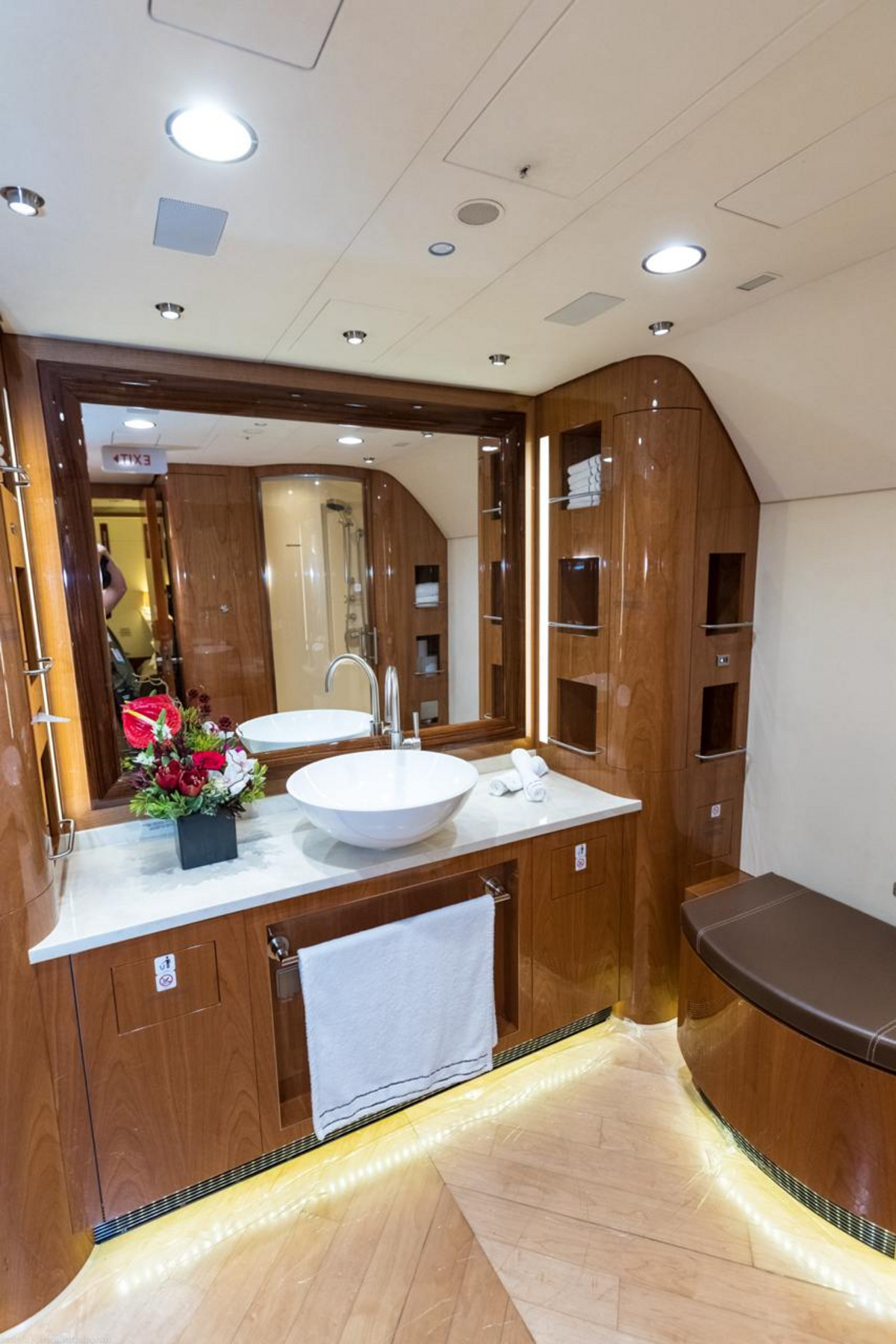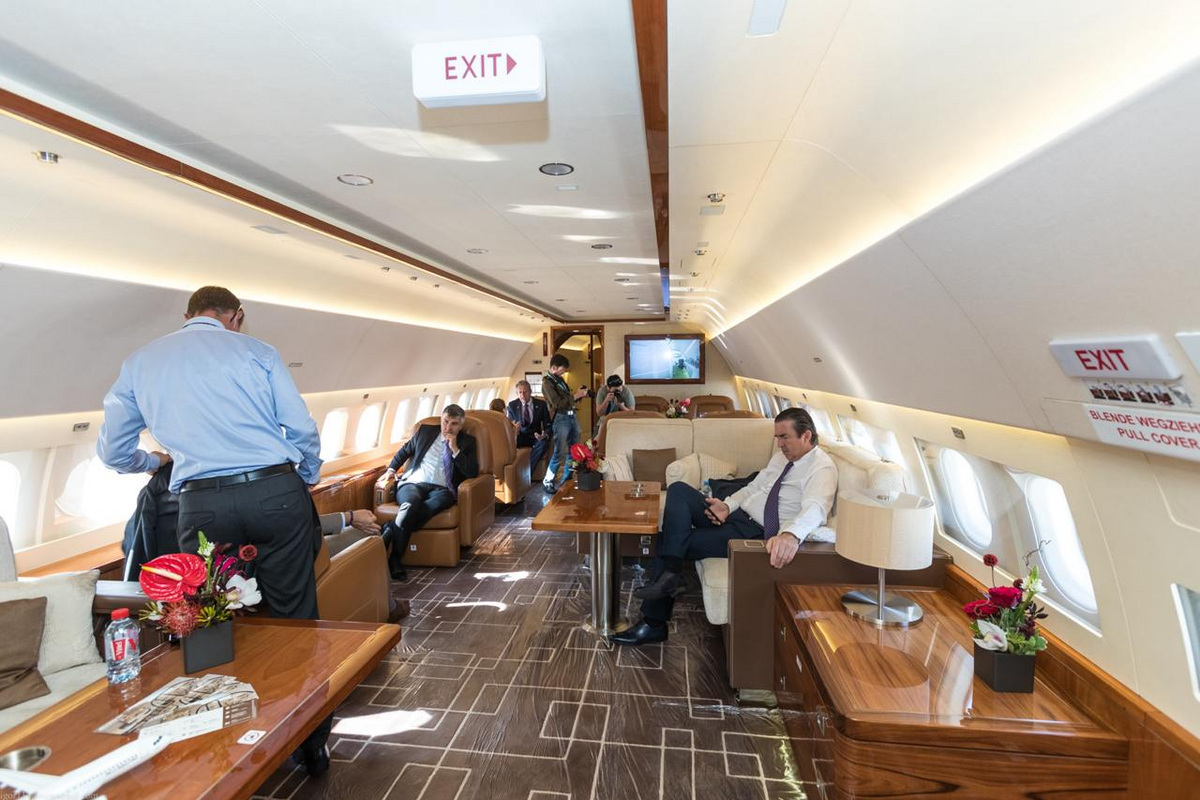 Роскошный Airbus A319 оборудован всеми удобствами для комфортного перелета. В салоне самолета есть спальня, душ, удобные диваны, места для приема пищи и телевизоры.