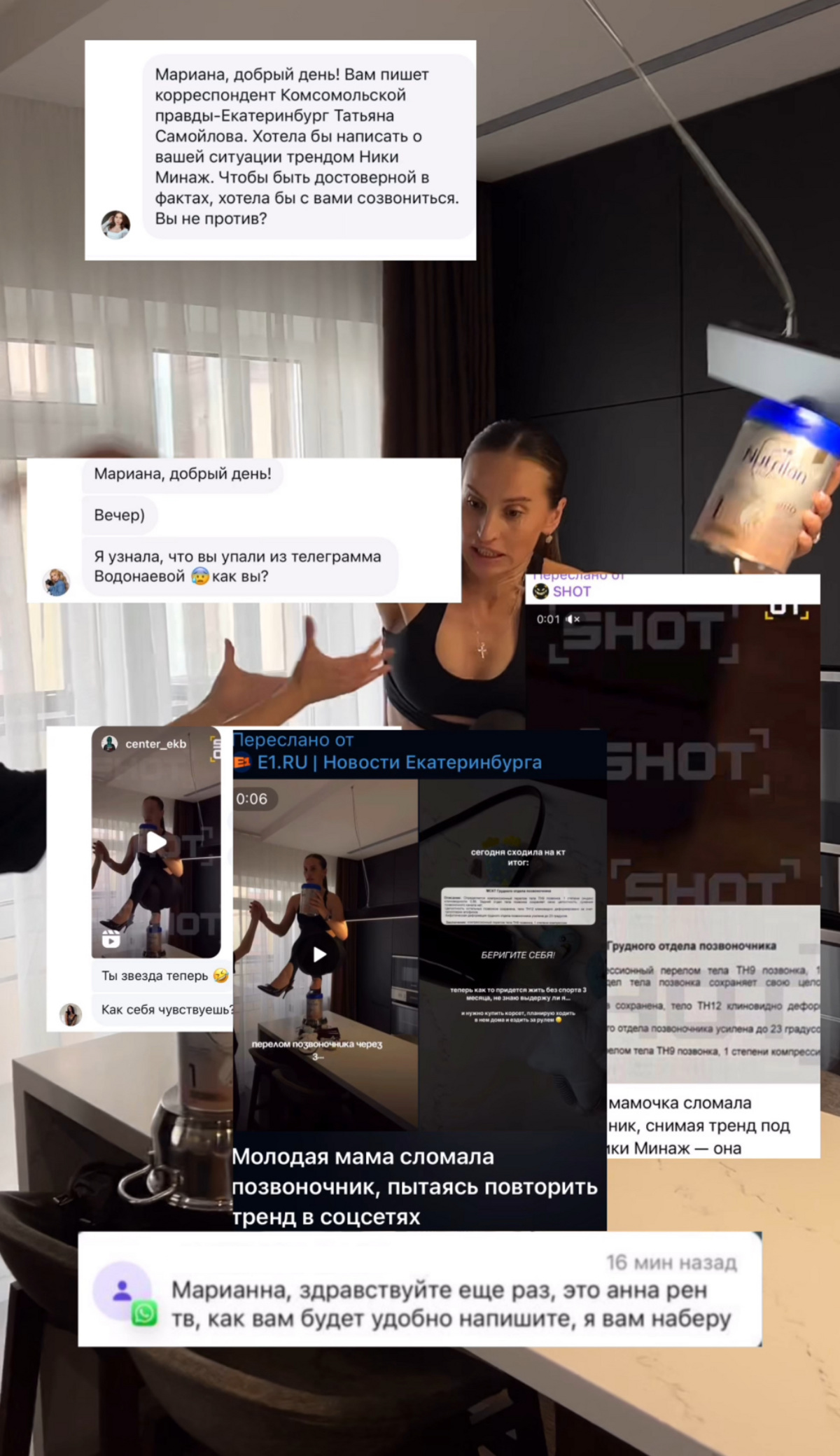 — Решила начать вести блог, первая контент-съемка — и вот я выхожу от врача с диагнозом « компрессионный сгибательный неосложненный перелом тела Th9». Ирония? Карма? Или просто жизнь, которая проверяет на прочность в самый неожиданный момент, — поделилась последствиями Nicki Minaj Challenge блогерша из Екатеринбурга.