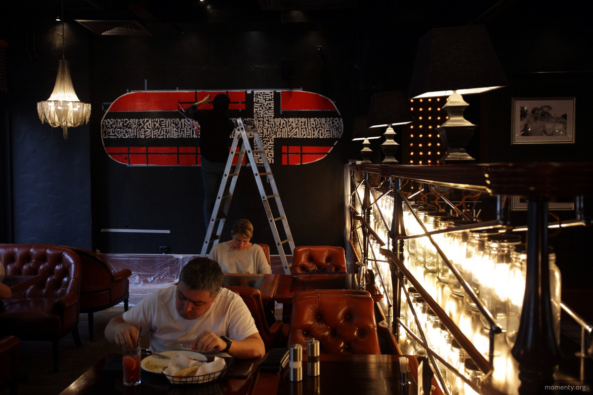 В Екатеринбурге воссоздали работу Покраса Лампаса, которую закатали в асфальт на Уралмаше. Правда, в уменьшенном формате. Копия «Супрематического креста» появилась на стене самого хайпового бара «Огонек». Инициатор идеи, ресторатор Евгений Кексин не исключает, что его задумка оскорбит не только верующих, но и самого художника. Но негативной реакции не боится.