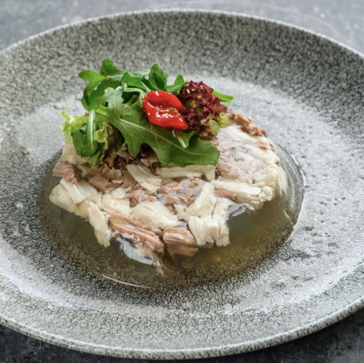 Из горячего — утка запеченная с рисом, яблоками и изюмом за 2000 рублей и корейка теленка на кости печеная с овощам за 8900 рублей. Бесплатная доставка начинается при заказе от 3000 рублей, при покупке на 5000 рублей ресторан дарит бутылку игристого, а на самовывоз действует скидка 10%.