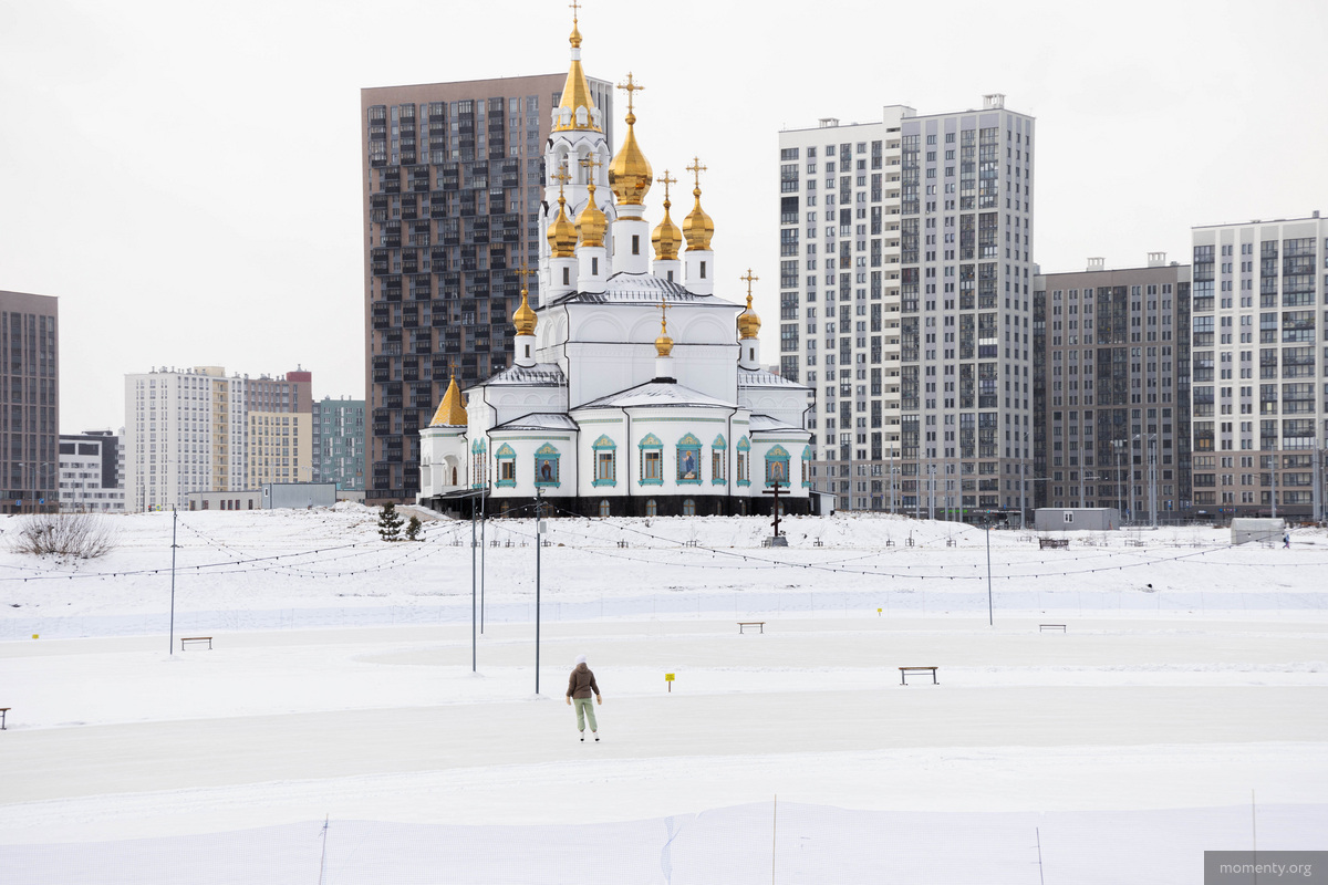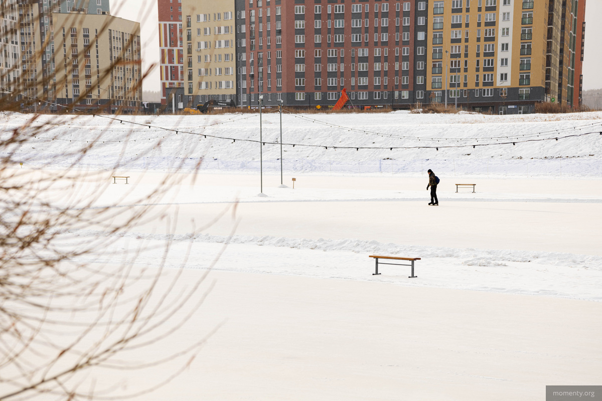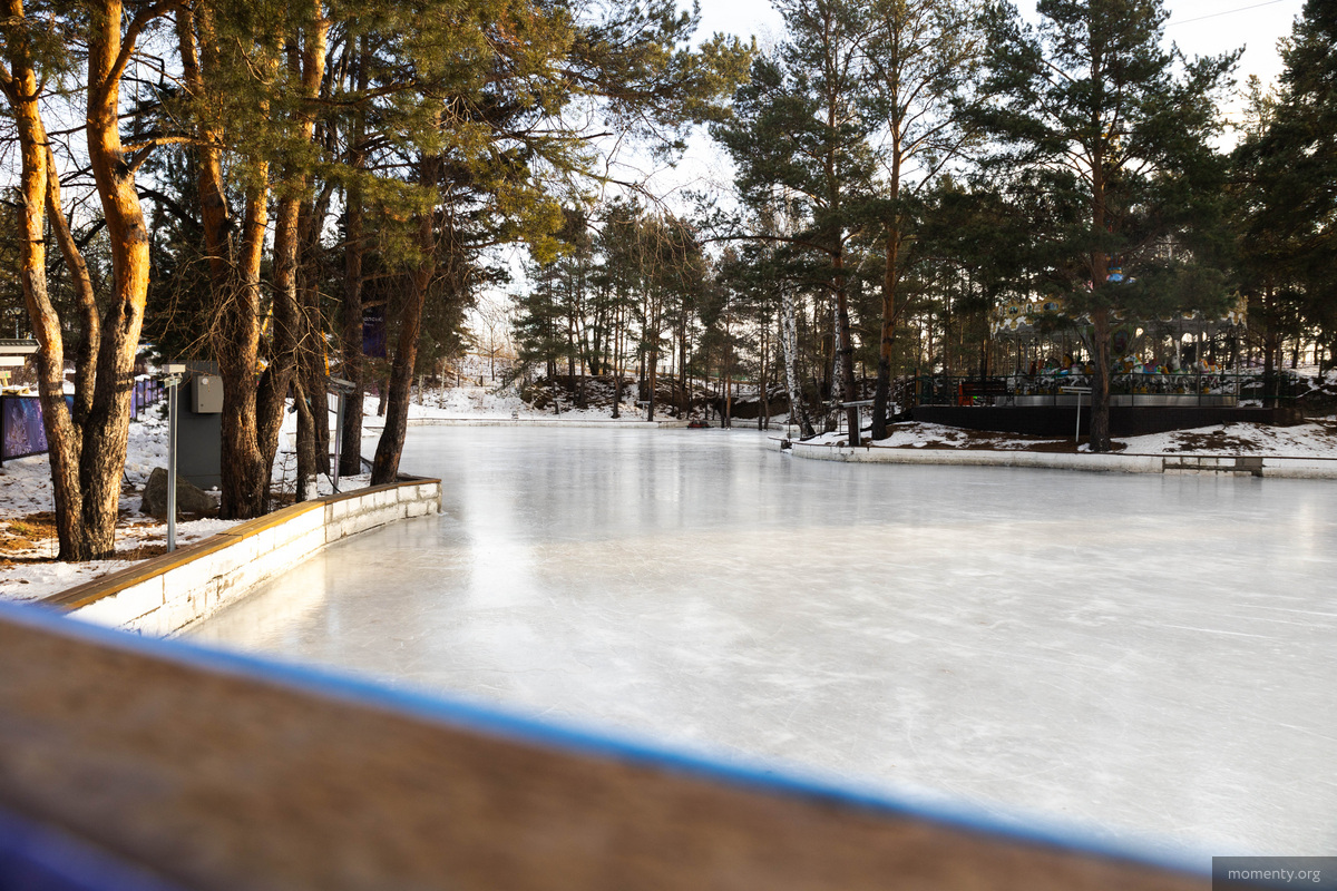 Первым делом мы пробежались по паркам города и запечатлели два работающих катка. Один заработал в «Радуга Парке», а другой — в Академическом районе.