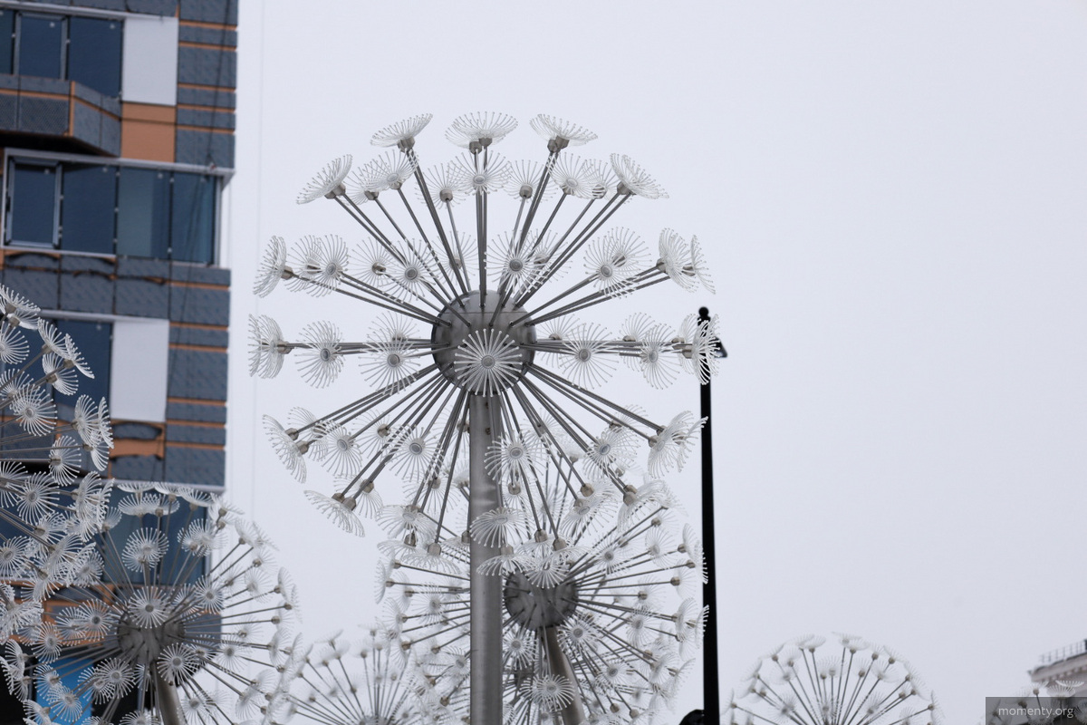 Первым делом мы заглянули в Библиотечный сквер. Там установлены новые Г-образные светящиеся опоры. Скоро можно будет устраивать зимние вечерние прогулки под светом фонарей в виде одуванчиков. А недалеко от сквера, возле здания правительства, рабочие занимаются установкой высокой ели.