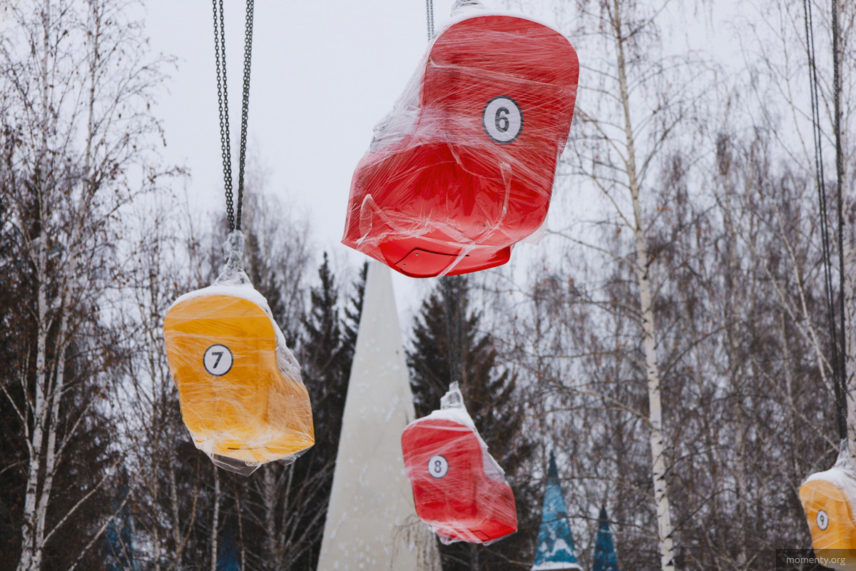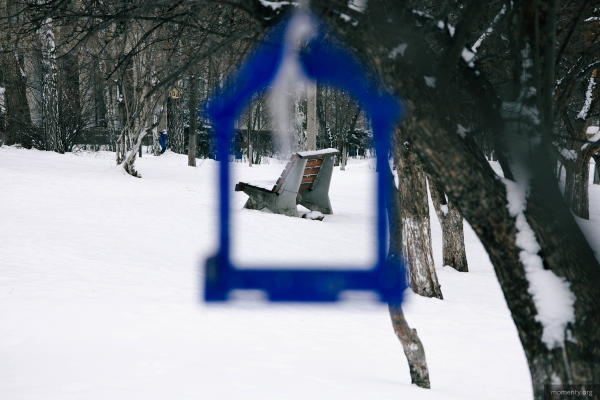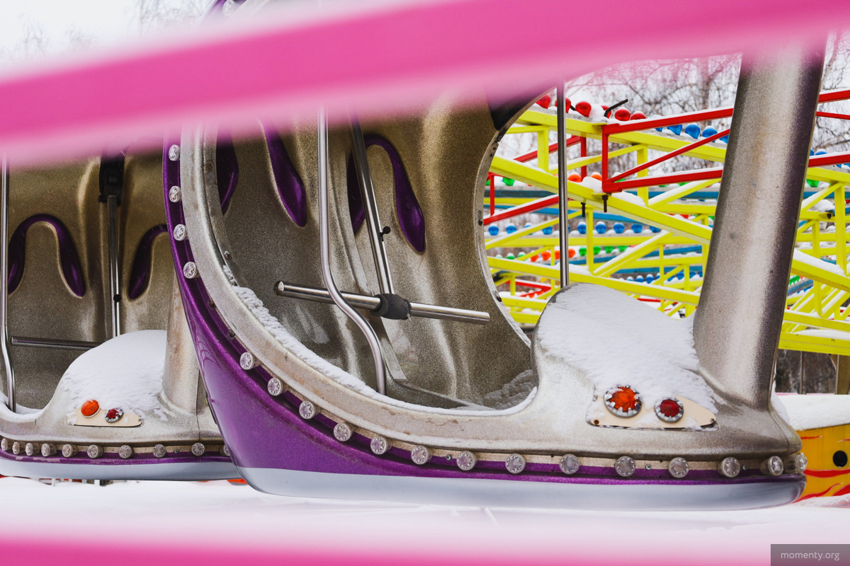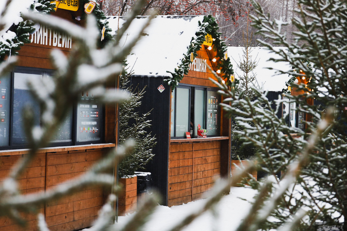 На этой неделе мы побывали в Парке Маяковского. «Уснувшие» аттракционы замело снегом, в уютных ярмарочных домиках подают кофе, а прохожие фотографируются рядом с нарядной елкой.