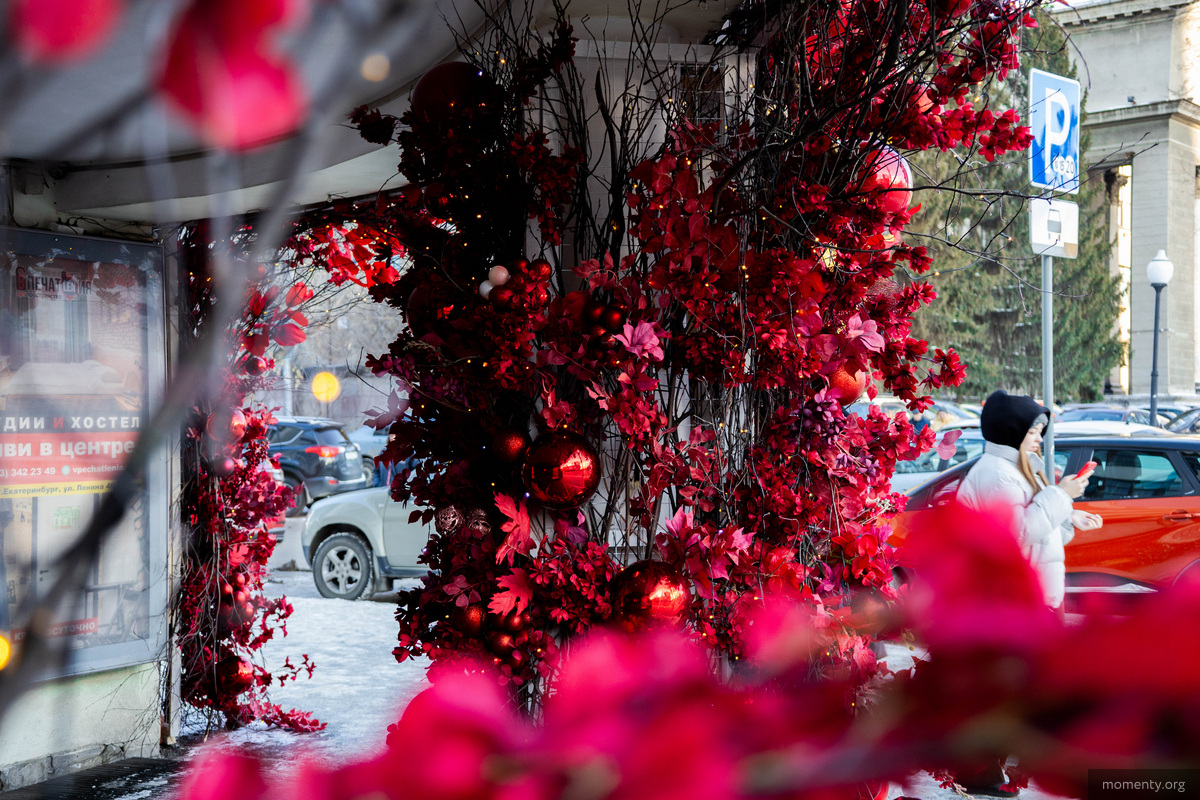 Екатеринбург сейчас — это одна большая новогодняя фотозона. На каждом шагу можно встретить гирлянды, елочные шары и бархатные банты.