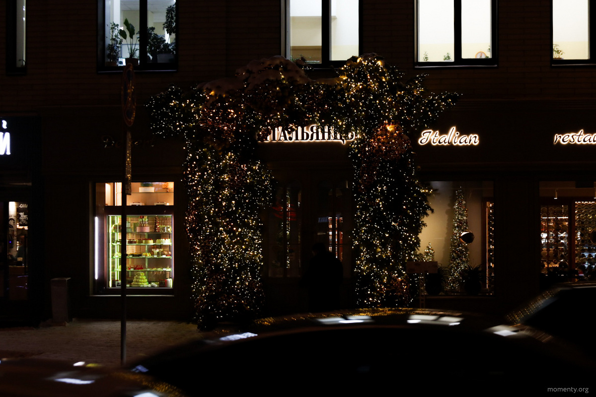Днем радует глаз пестрое оформление входных групп, а ночью город сияет огнями на каждой улице. Гирлянды повсюду создают праздничное настроение.