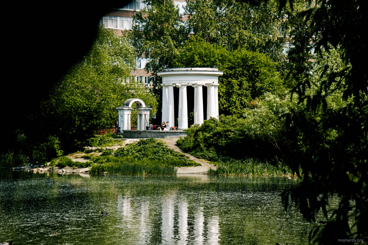 В Харитоновском саду все как в кино: белые колонны, тенистые улочки, живописный водоем и художники у берега. Гуляем и не верим, что все это по-настоящему, что это часть нашей повседневной жизни. Но Харитоновский сад именно такой — романтичный, зеленый и совершенно особенный.