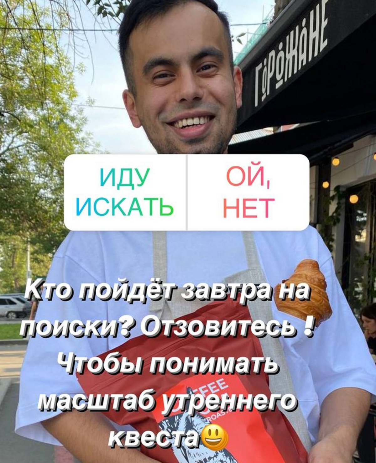 Акция «Горожан» продлится до субботы. Первый приз — специальный завтрак от шеф-повара бистро — уже нашли в здании кофейни MURU. Завтра ресторатор спрячет пачку кофе, а в субботу — бутылку шампанского. Информацию о том, где найти оставшиеся два подарка, выложат в историях на странице «Горожан» в Instagram*.