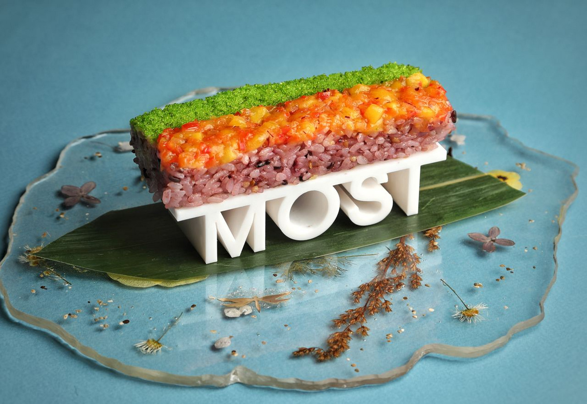 Он также отметил, что название отражает концепцию заведения — здесь наводят мосты между европейской и азиатской кухней. Готовят по французским технологиям традиционно азиатские блюда. Блюда на открытой кухне бистро MOST готовит шеф-повар из мишленовских ресторанов Франции Максим Погадаев. Три с половиной года он учился в институте Поля Бокюза, а после стажировался в известных европейских проектах. В меню бистро «встретились» Европа и Азия — локальные продукты, французские техники и азиатские акценты. Удивлять гостей будут не только вкусом, но и уникальной подачей.