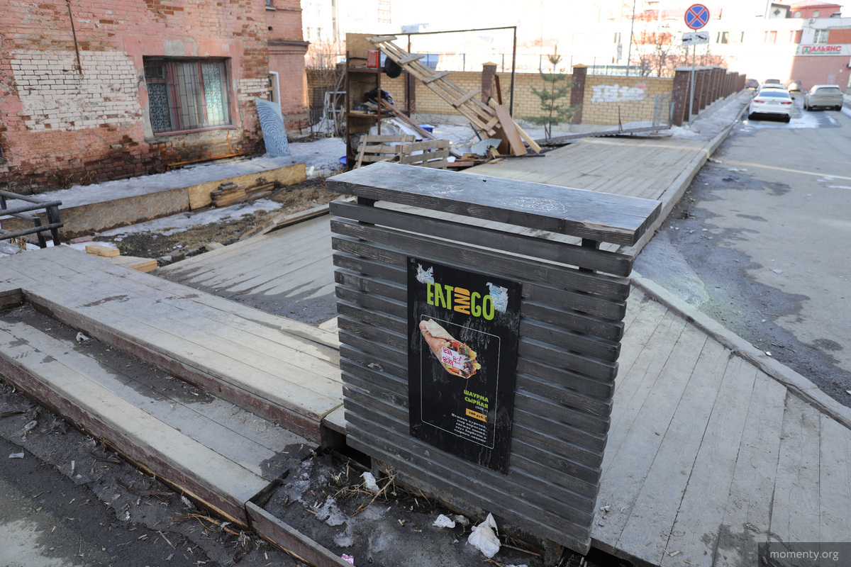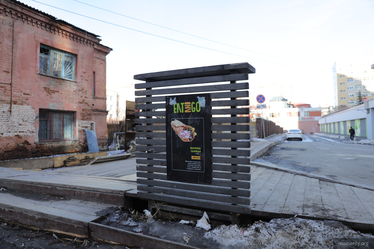 Шарумечная напротив «Тихвина» неожиданно пропала. Местное элитное заведение быстрого питания Eat and Go работало на Хохрякова несколько лет и пользовалось популярностью. Сейчас на месте ларька осталась только вывеска.