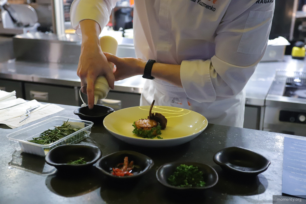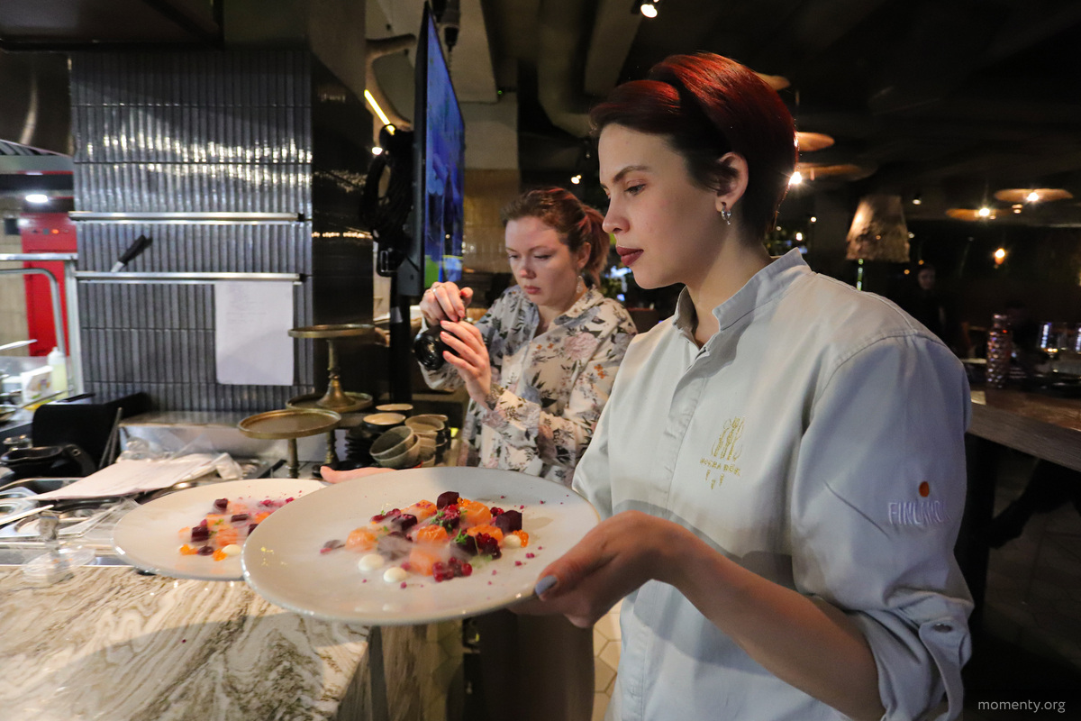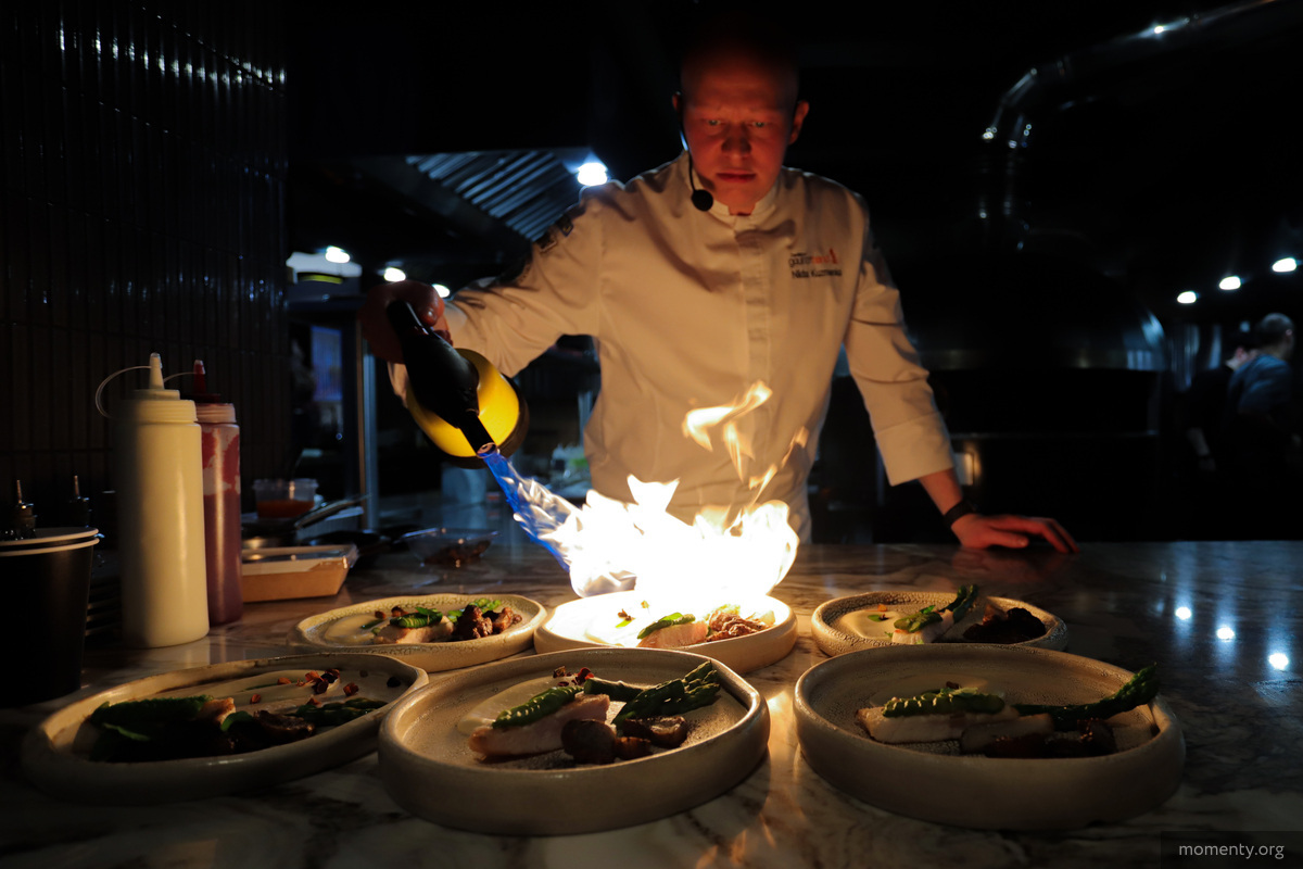 — Мне нравится игра вкусов, для меня это нечто новое. Я не соединял ранее ванильный соус с козьим сыров в вафле, это неоыбчно и инетерсно. Я был в приятном удовольствии. Я думал, что у нас будут проблемы с кашей, боялся, что гости ее не поймут, но, как оказалось, вышло совершенно наоборот. Это значит, что гости готовы к экспериментам и новым вкусам, — делится с «Моментами» Никита Кузьменко.