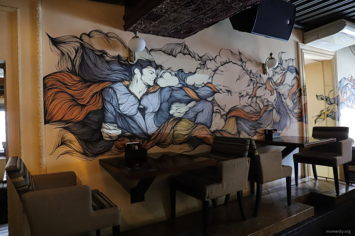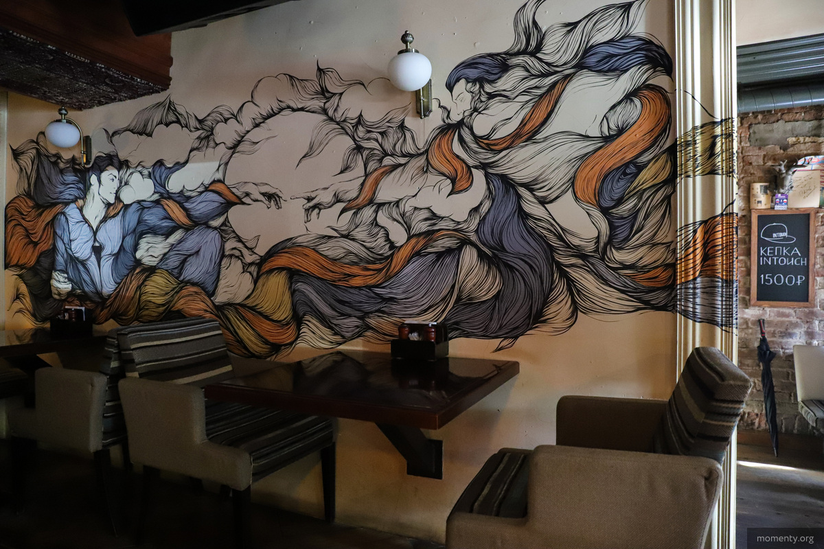 На входе гостей встречает редкий арт-объект. Его специально расписывал Василий Матафонов, известный под псевдонимом Custom Bas.