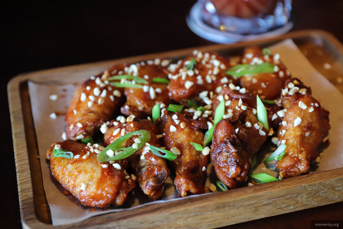 Хрустящие слегка острые крылышки в ярком малиновом соусе.