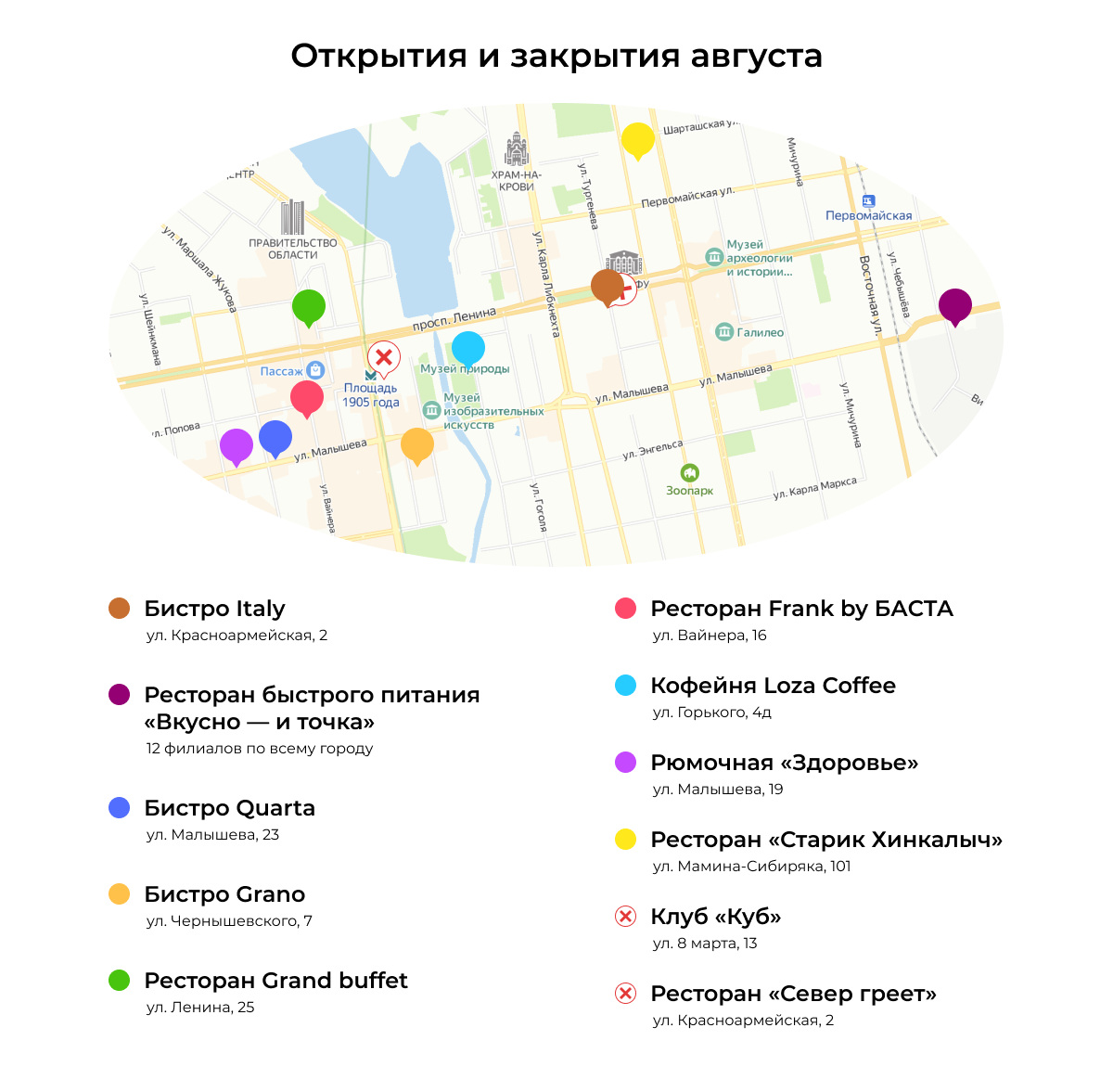 В сравнении с июлем август выдался богат на гастрооткрытия. Горожан порадовали сразу девятью новыми заведениями. В списке и итальянские, и европейские, и грузинские рестораны. Не обошлось и без закрытий — в августе работу приостановили два проекта. Что нового появилось на гастрокарте Екатеринбурга в августе.