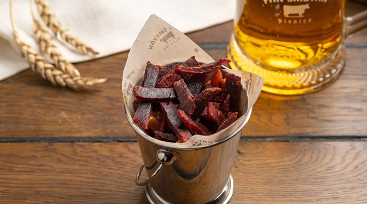 В Pan Smetan не совсем обычная новинка. В ресторан привезли новые сорта пива. На закуску предлагают свиные ушки, копченый арахис и кешью, а также вяленую говядину.