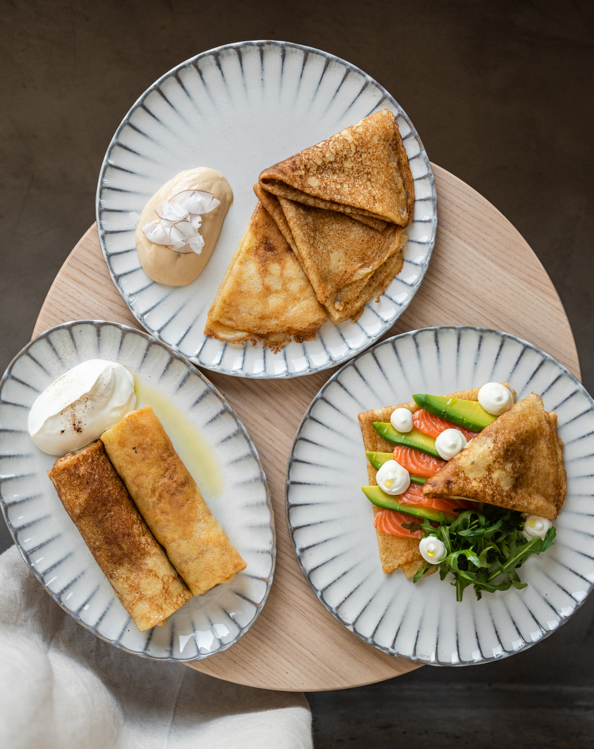 В одном из самых стильных ресторанов Екатеринбурга grain на Масленицу сделали пять вариаций блинов с разными начинками. Предлагают попробовать блины с:
