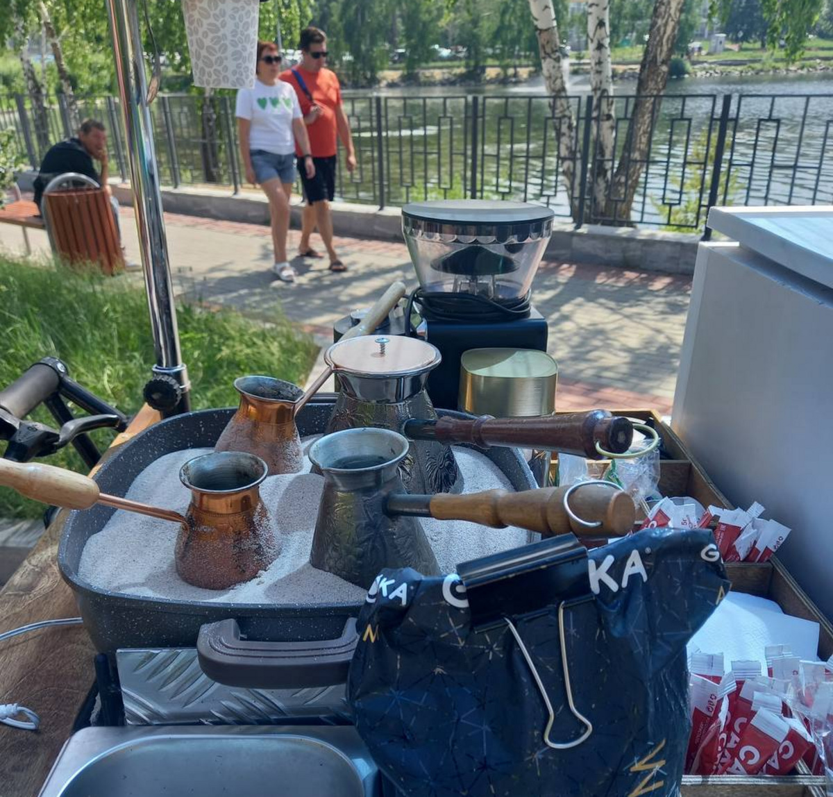 Уральцев не удивишь мобильными кофейнями. Например, несколько фургончиков с кофе находятся на набережной в центре Екатеринбурга или у завода в Сысерти. Однако уральский мастер создал новый способ продажи напитков. Василий Галихин за полгода собрал велокафе, в котором готовит кофе на раскаленном песке и развозит его по Заречному.