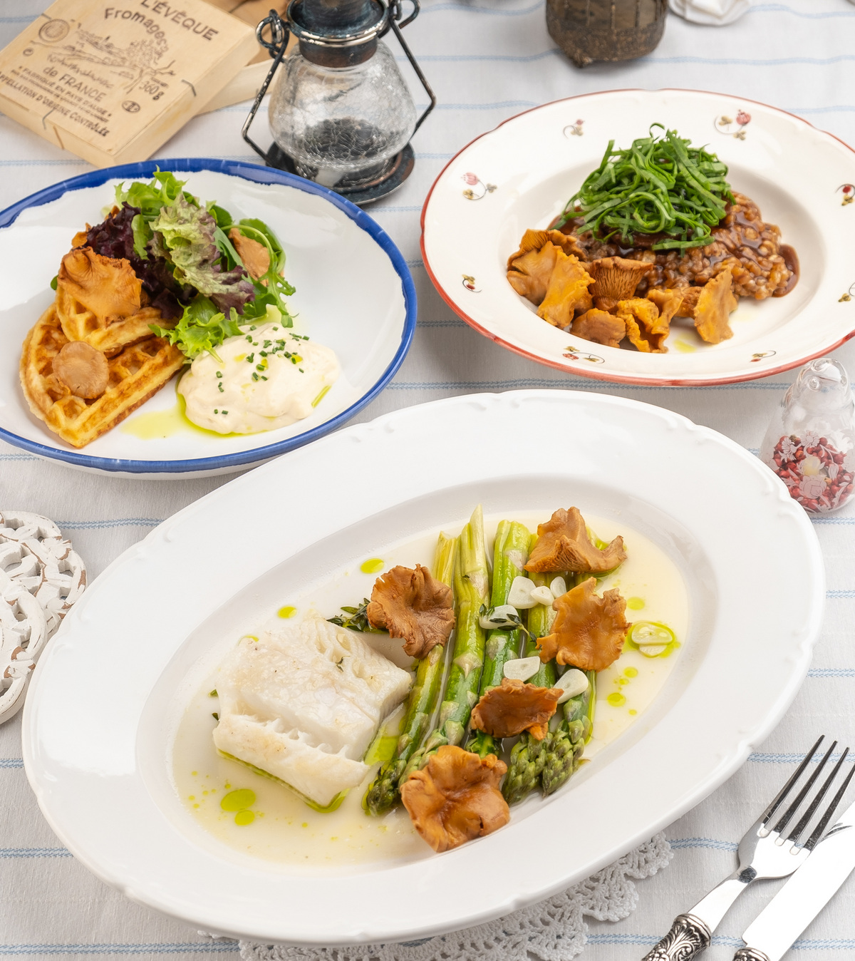 — Котлета из фермерского кролика, приготовленная в сухарях, с мятным зеленым горошком;