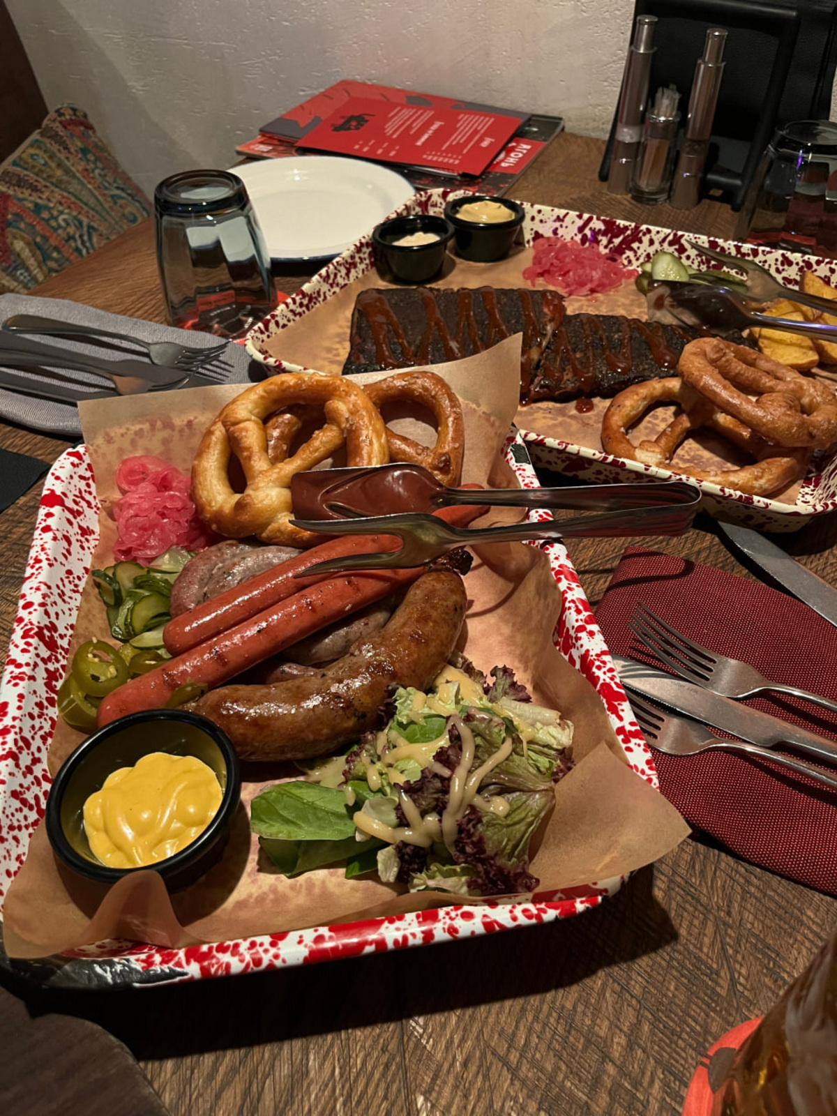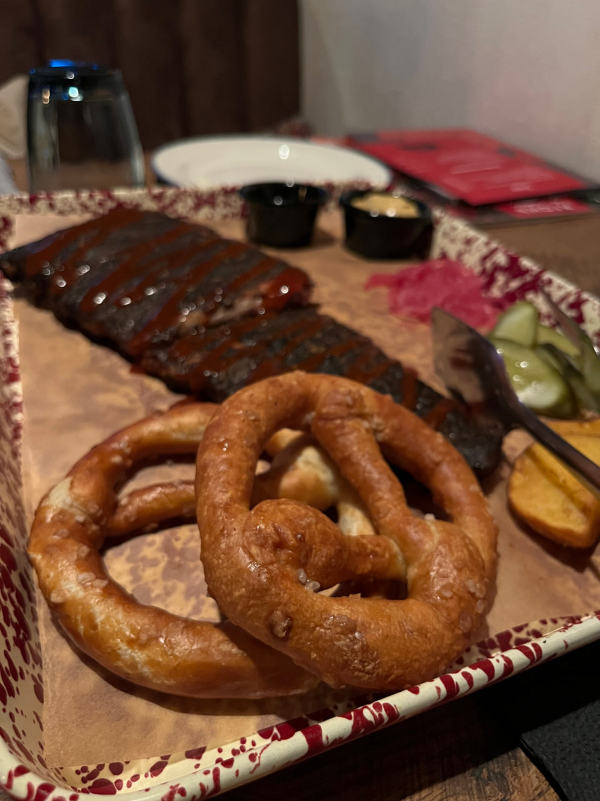 — Огромные свиные ребра из смокера в соусе smoke BBQ;