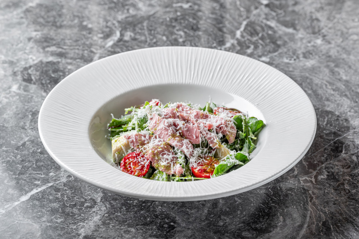 — Салат с утиной грудкой, авокадо и томатами черри;