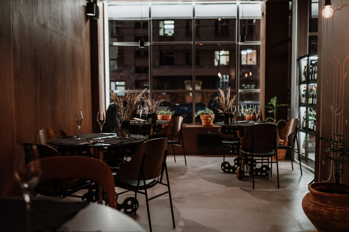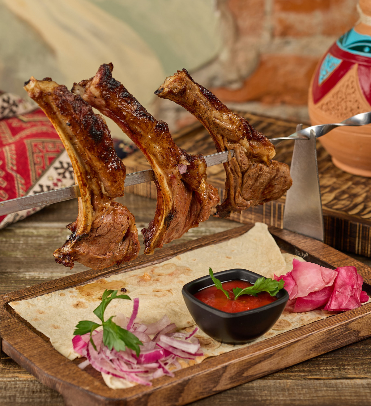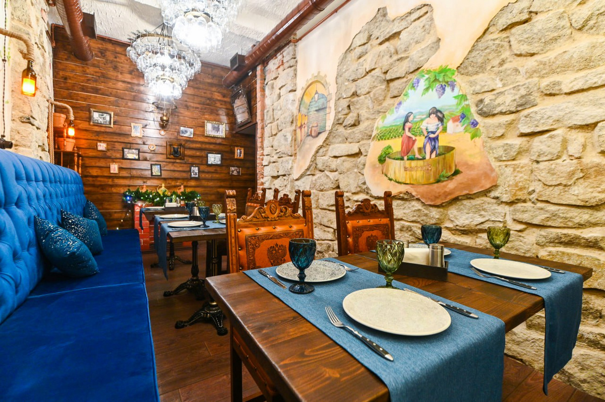 В ресторане с кавказской кухней все готовят с душой: хинкали лепят по домашним рецептам, выпекают метровые хачапури, подают запеченные мидии с армянским акцентом и медовую грушу с сыром Дорблю. На основное предлагают попробовать томленую говядину с овощами, хрустящего цыпленка тапака и шашлык с домашним соусом.