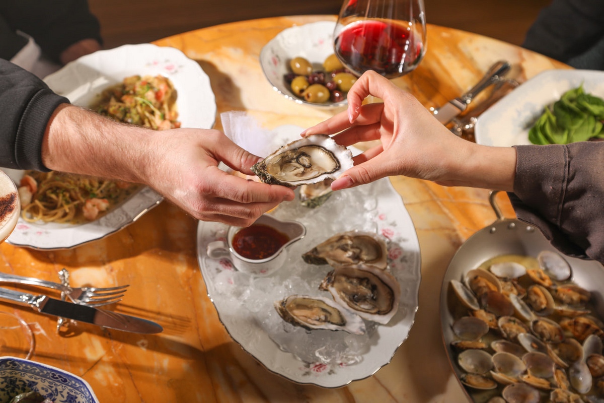 Ресторан «Счастливы вместе» рассчитан примерно на 200 мест. В меню заведения можно найти свежие морепродукты, пасту, тартары, домашнюю выпечку и стейки на настольном гриле. Для детей предусмотрено специальное меню. По запросу гостей многие блюда можно приготовить на пару или с легкими зелеными гарнирами.