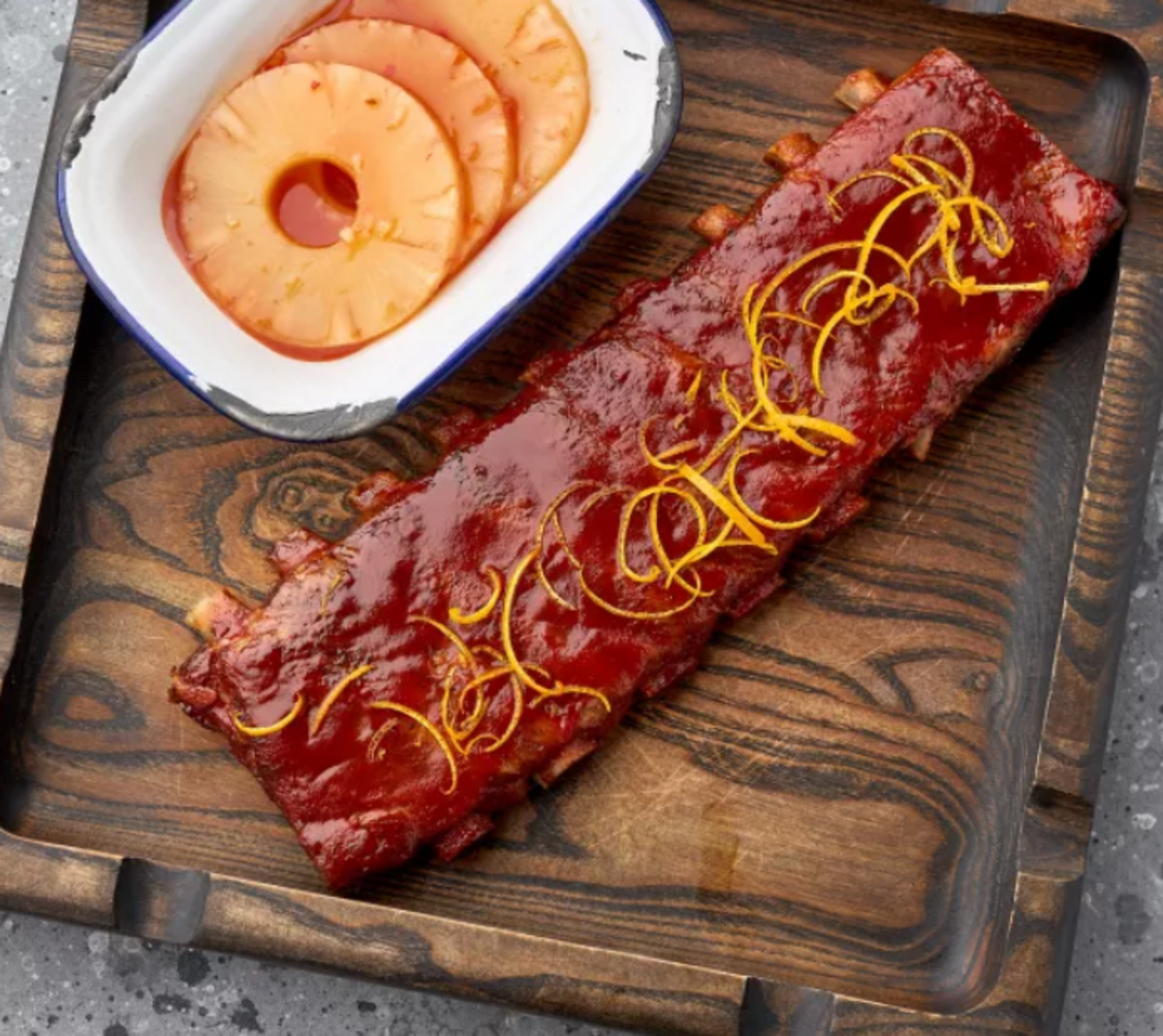 — Большая порция свиных ребер в соусе ананасовый барбекю;