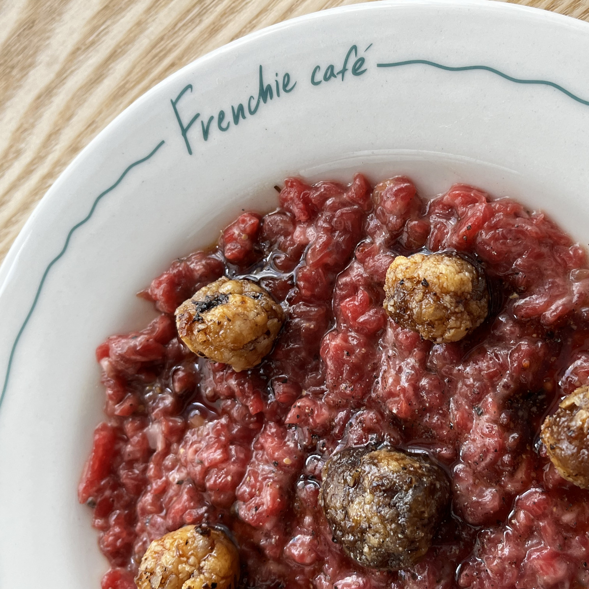 — Тартар из говядины с трюфельным винегретом и костным мозгом.