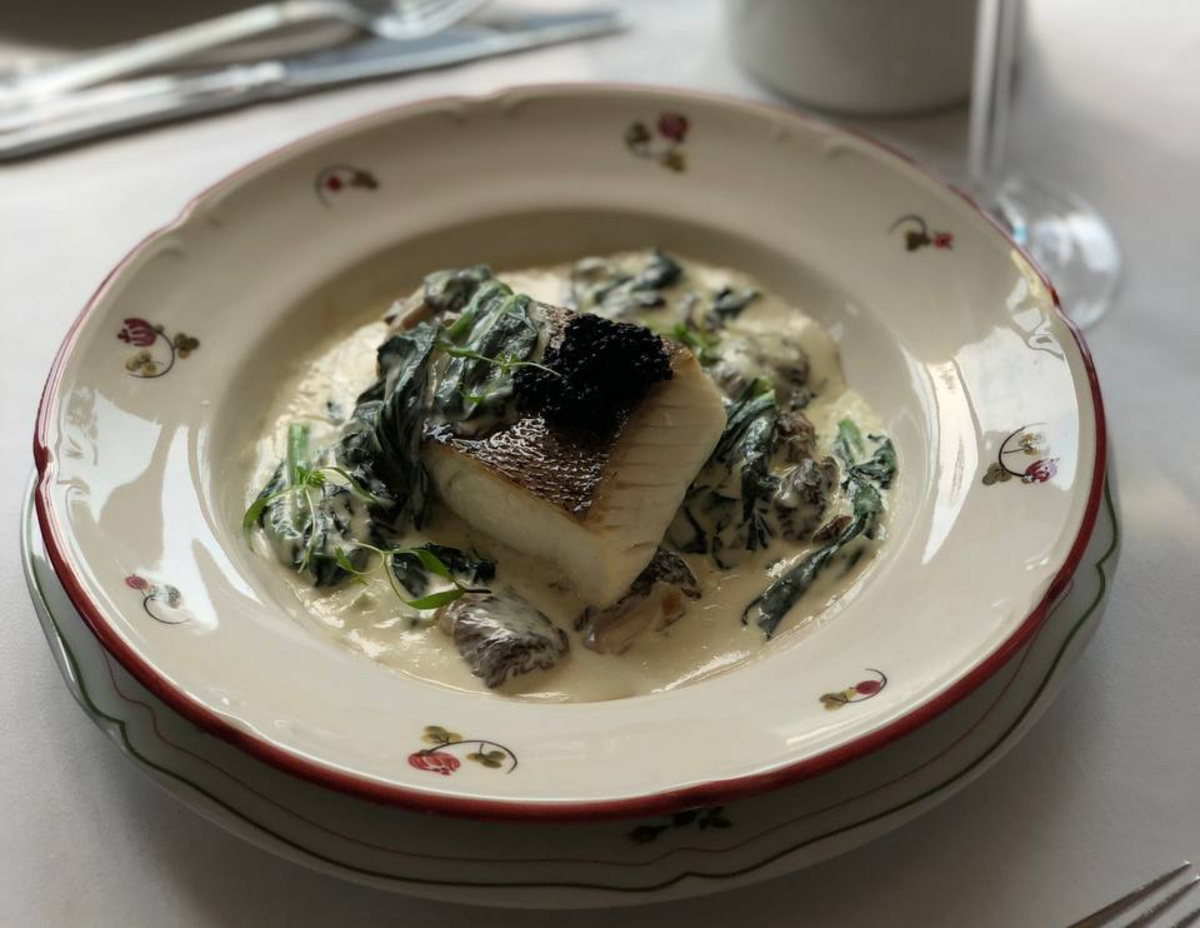 В меню ресторана нежная новинка — палтус, обжаренный с тимьяном. Подают со сморчками, которые готовят на сливочном масле с добавлением сыра горгонзола, сливок и свежего шпината.