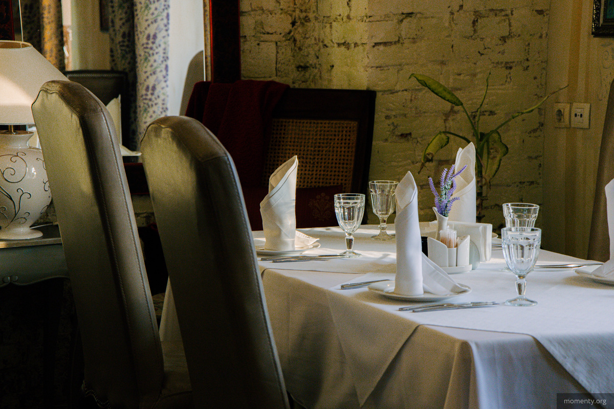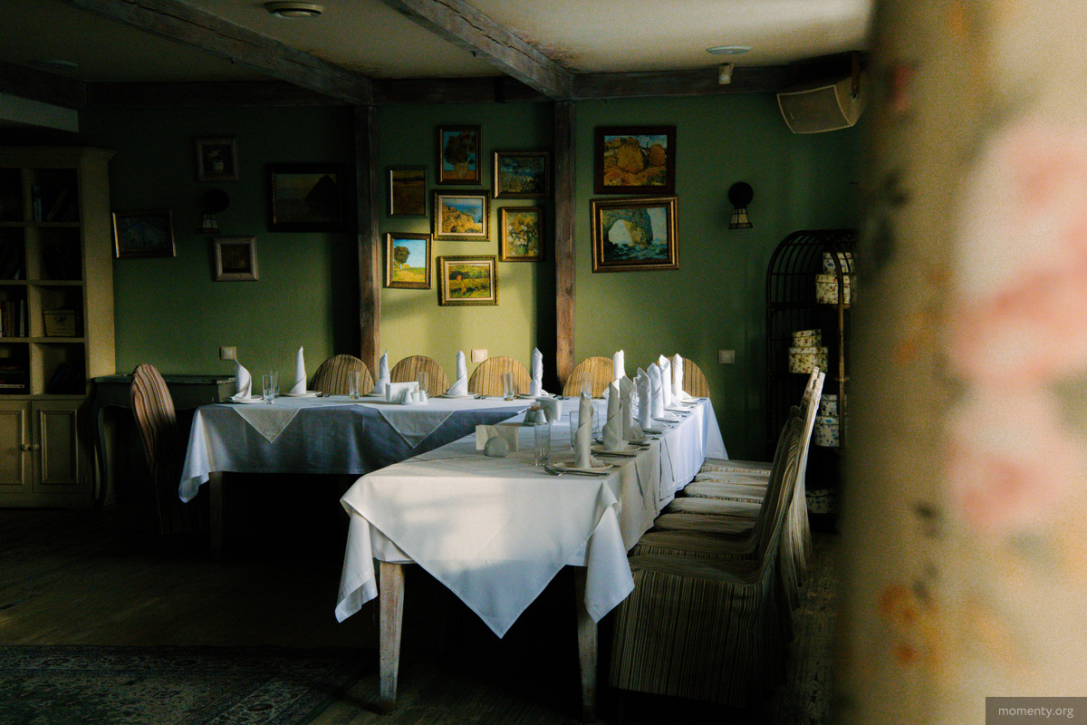 Третий этаж посвятили банкетам. Местный зал расширили до 45 человек. Теперь пространство наполнено светом и воздухом, что создает простор и прекрасные условия для больших праздников и мероприятий. На стенах множество картин, а мебель тут антикварная.