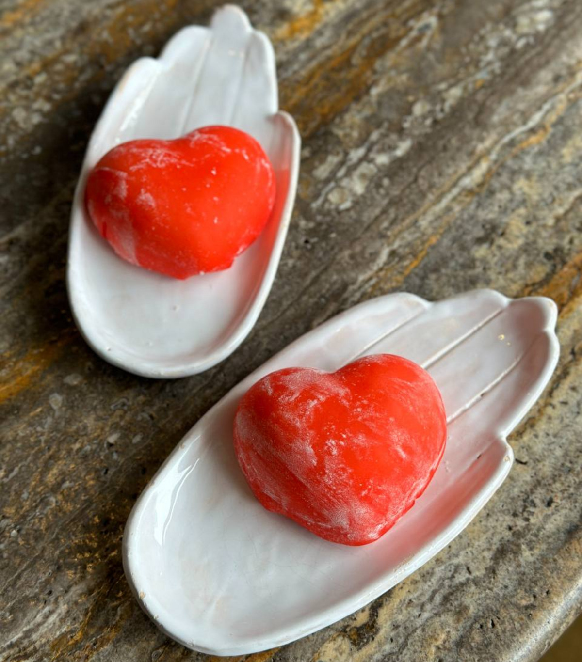 В ресторане можно попробовать два романтичных десерта: муссовое пирожное в форме красного сердца со свежей клубникой и бенто-торт «Сердце» — медовик с брусничной начинкой.