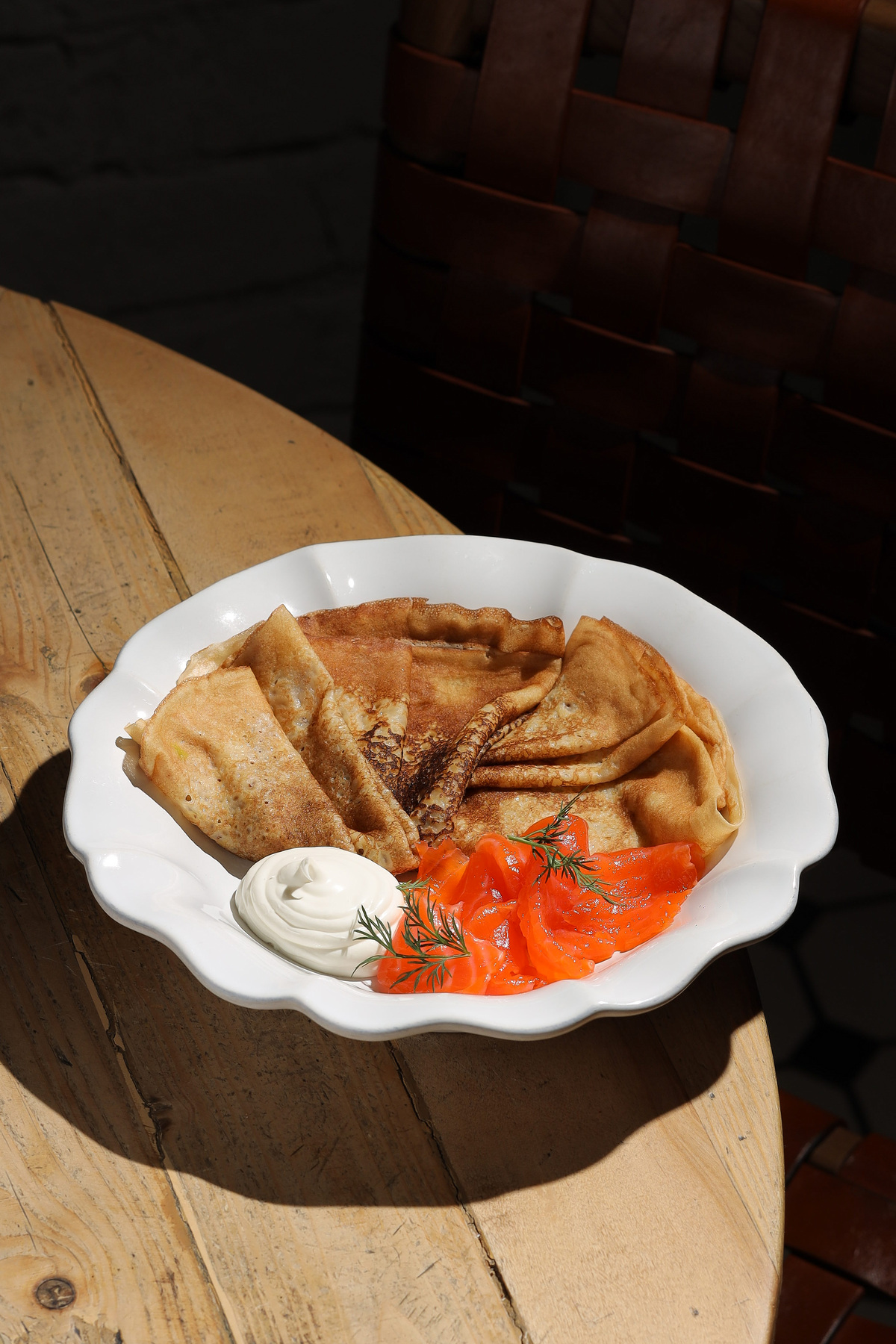 Тут подают кружевные блинчики с уткой и печеным яблоком, а еще блины с курицей и грибами в соусе бешамель. Можно найти и классику — блюдо с мясом и сметаной, лососем и красной икрой. В качестве десерта в Масленицу советуют шоколадные блинчики с фисташковым кремом и блинный торт с молочным шоколадом.