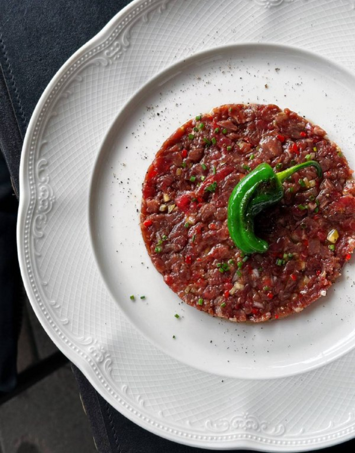 В ресторане «Стейк-Хаус» появились две новые летние закуски с перчиками падрон. Одна из них — тартар из говядины с перцами. Блюдо подают с ржано-пшеничным багетом на солоде.