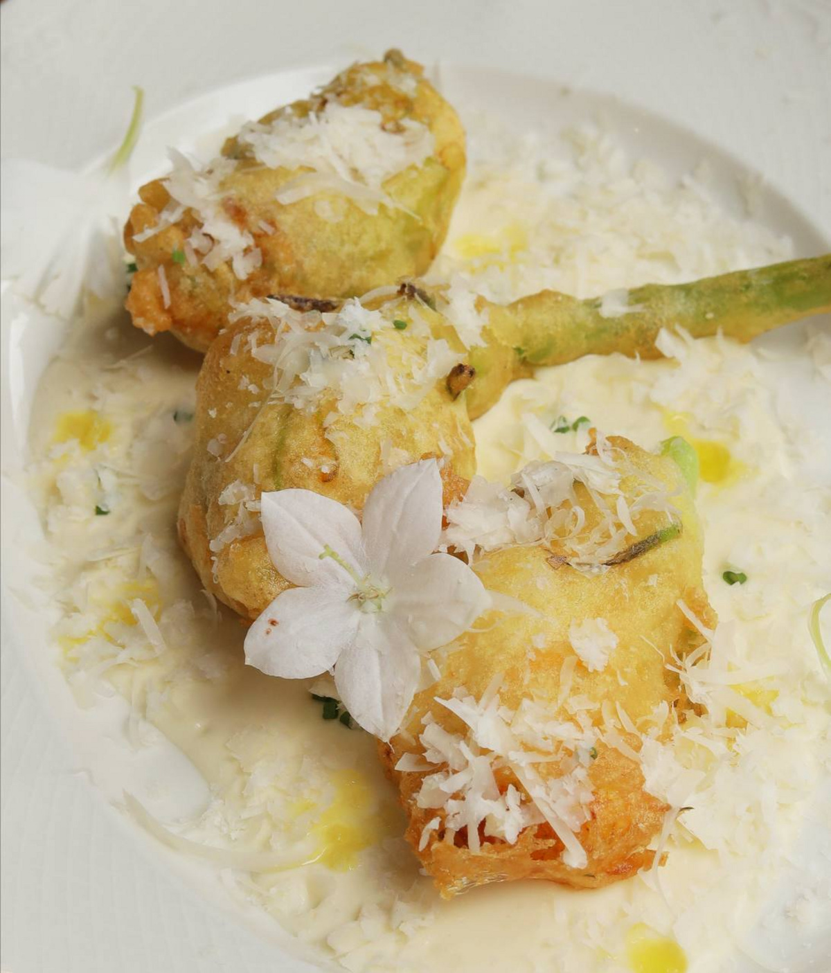 Последние две недели в ресторане встречают новым необычным блюдом. Горожанам и туристам предлагают съедобные цветы цукини с крабом и пармезаном.