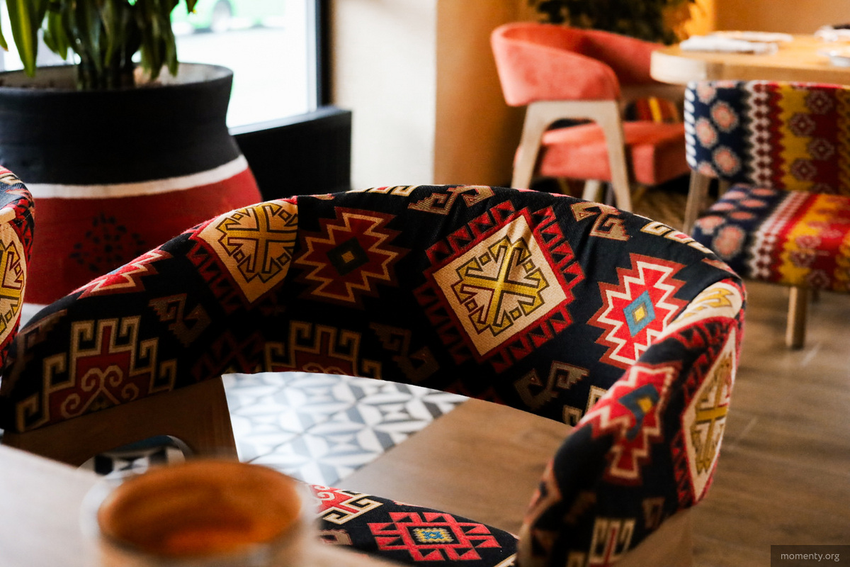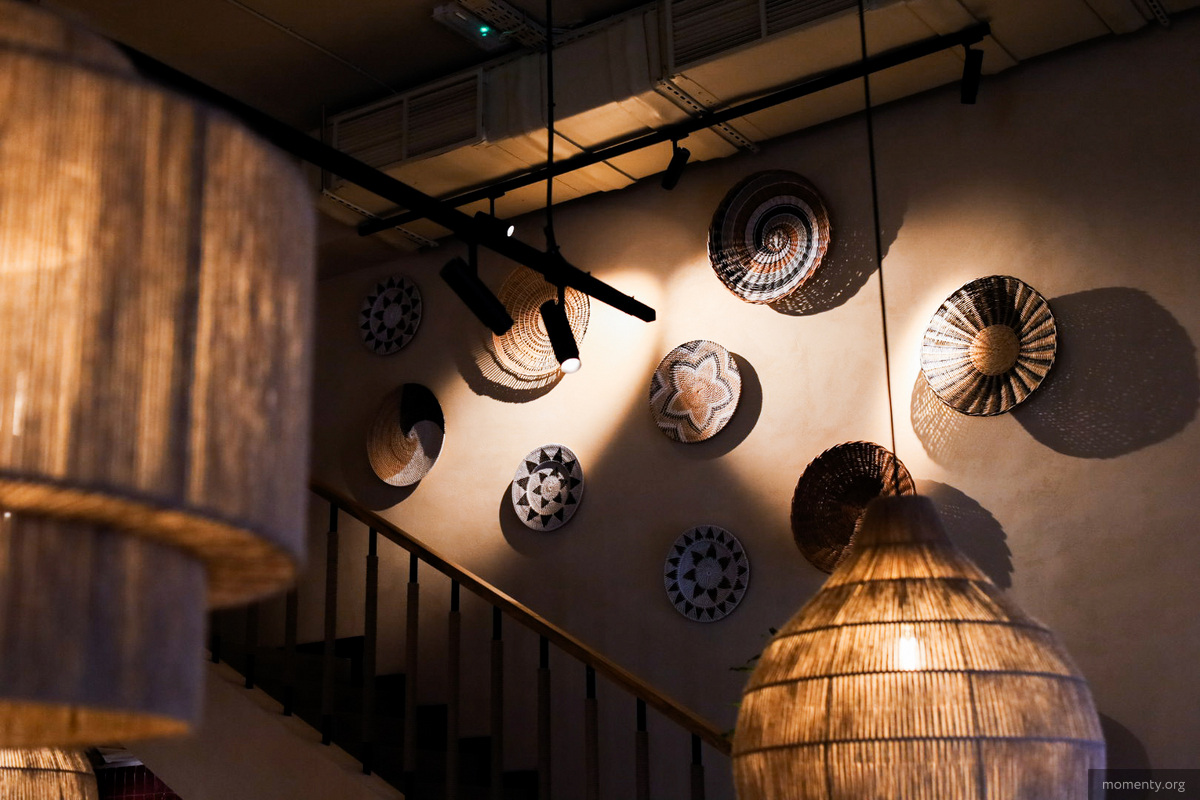 Дизайн заведения разрабатывала студия Ксении Хмелевской. По словам представителей, им было важно создание уютной и домашней атмосферы для гостей, поэтому в интерьере можно заметить много текстиля, зелени, а также элементов декора из натуральных материалов.