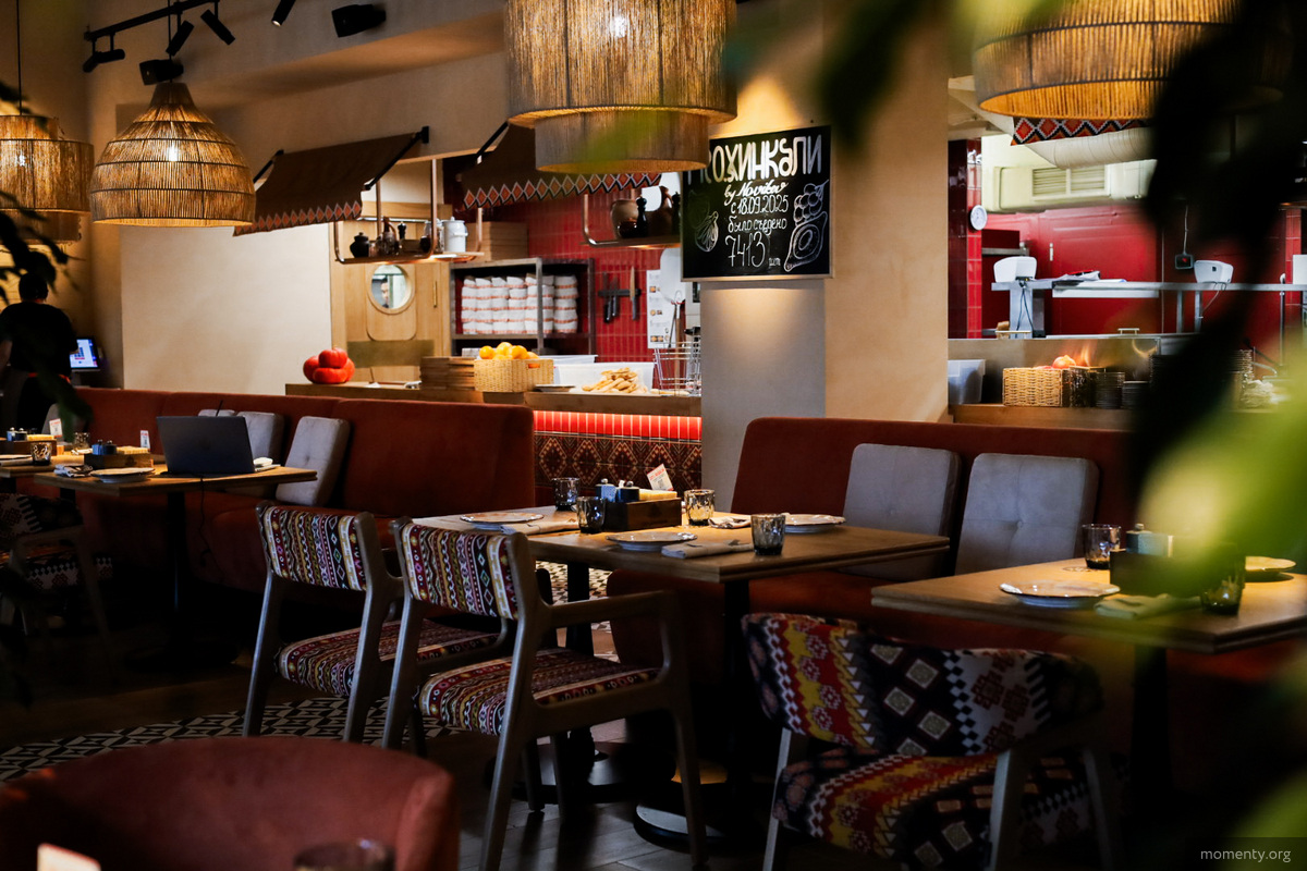 В меню ресторана — фирменные хинкали, хачапури, пряное харчо, шашлык, люля-кебаб, а также салат «Цезарь» в грузинской интерпретации и другие блюда. Одна из фишек сети «PRO.Хинкали» — открытая кухня.