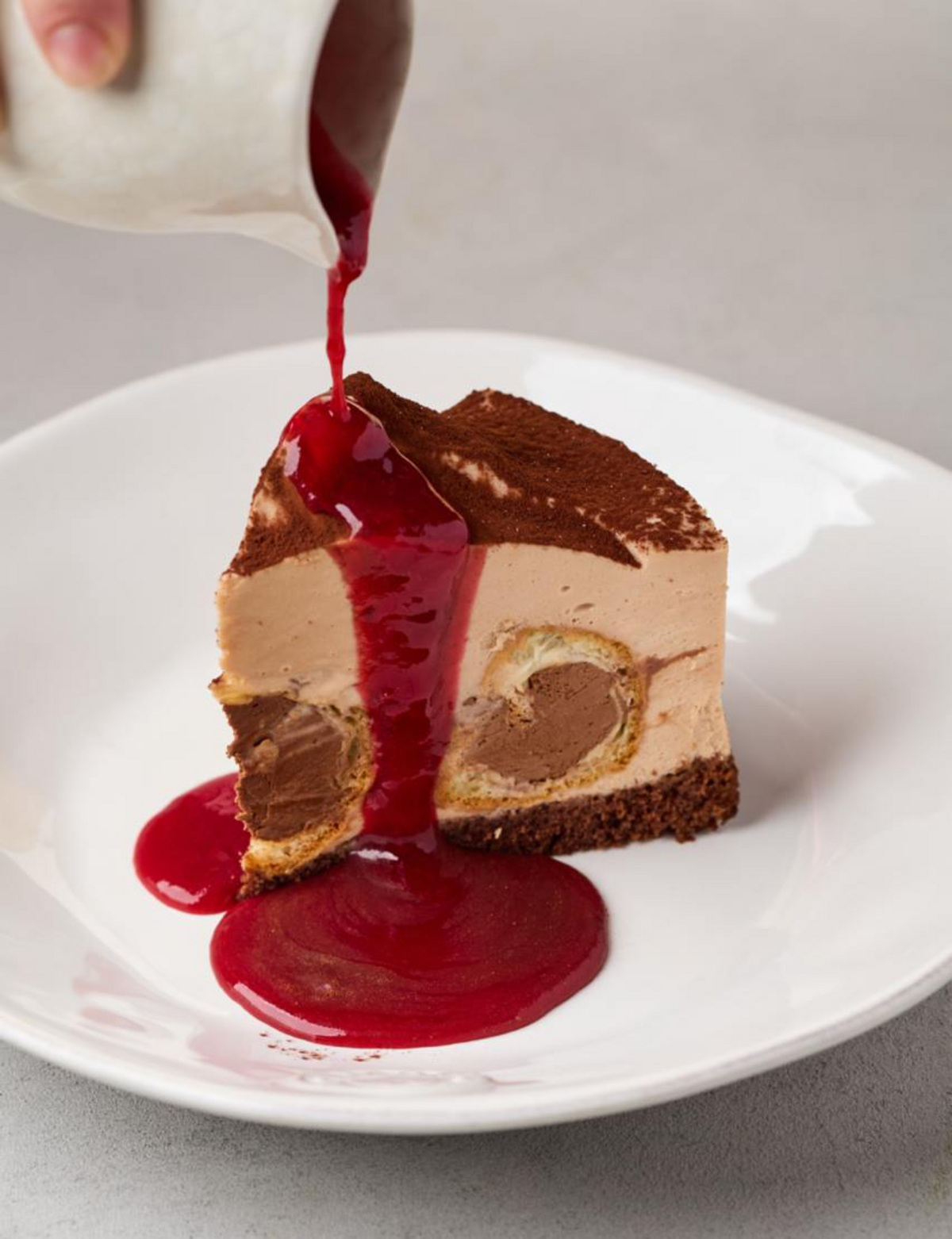 В заведении решили порадовать любителей сладкого. Теперь там подают торт с пряным ганашем на черном шоколаде — при подаче его заливают вишневым соусом.
