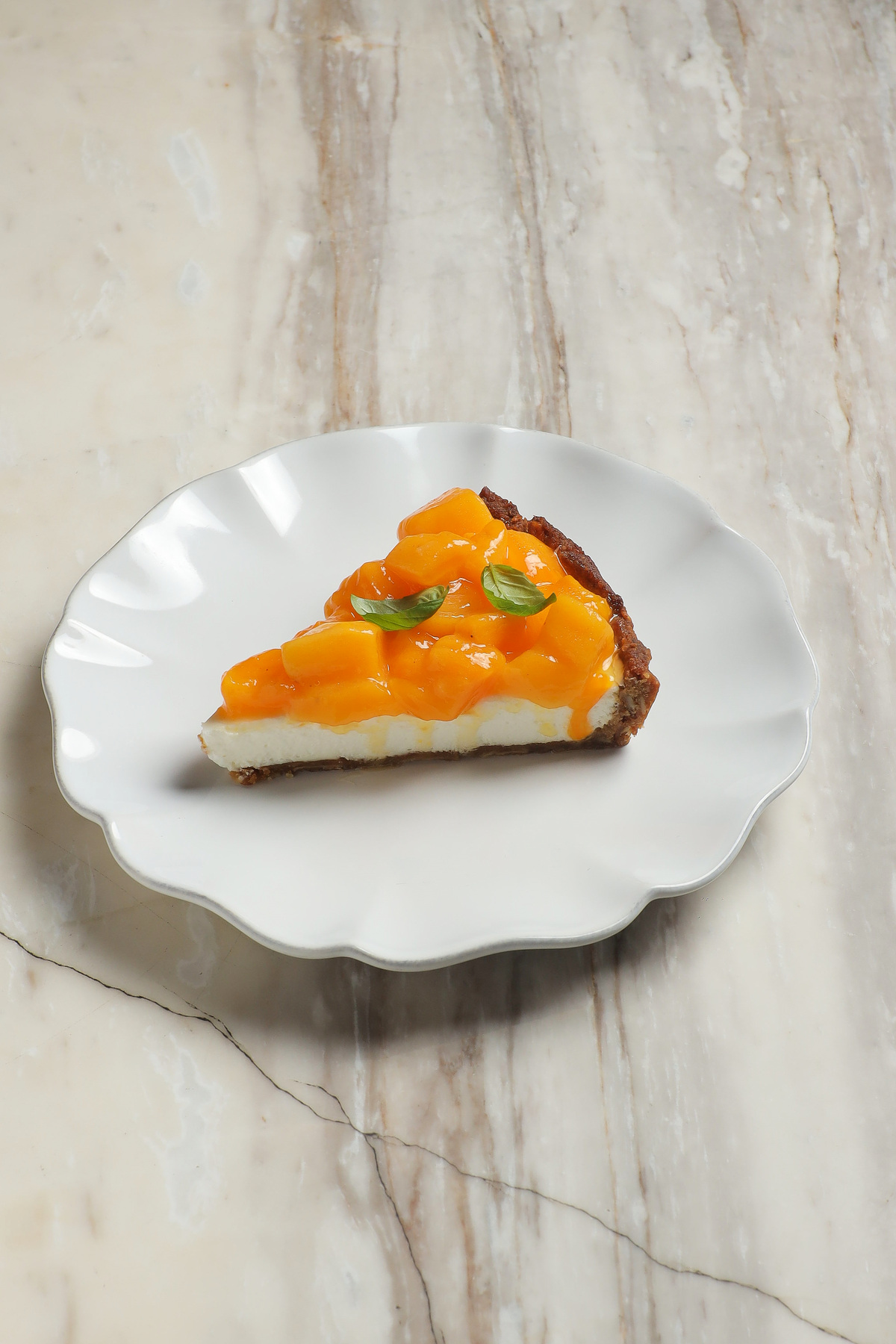 — Камамбер, запеченный в печи, с хурмой и фисташками;