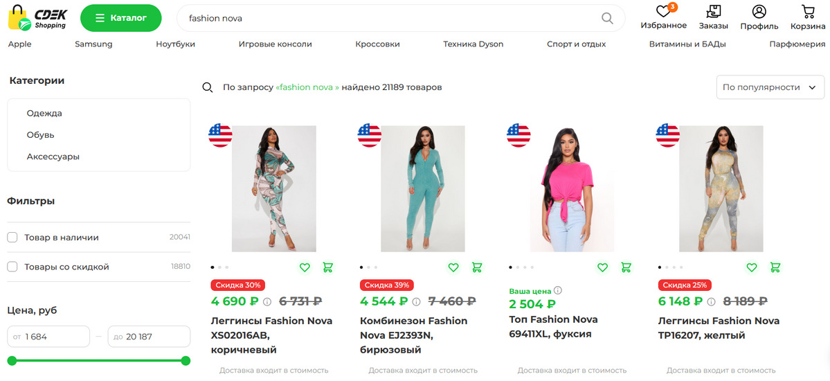 На платформе CDEK.Shopping появились товары популярной среди зарубежных звезд марки одежды Fashion Nova. Уральцам доступно более 20 тысяч позиций бренда.